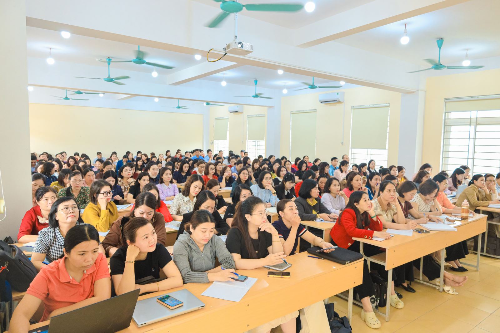 Đặc biệt, chương trình có sự tham gia của gần 1.000 học viên là cán bộ quản lý, giáo viên, nhân viên đến từ các cơ sở giáo dục trên toàn tỉnh, tham gia theo hình thức trực tiếp kết hợp trực tuyến.