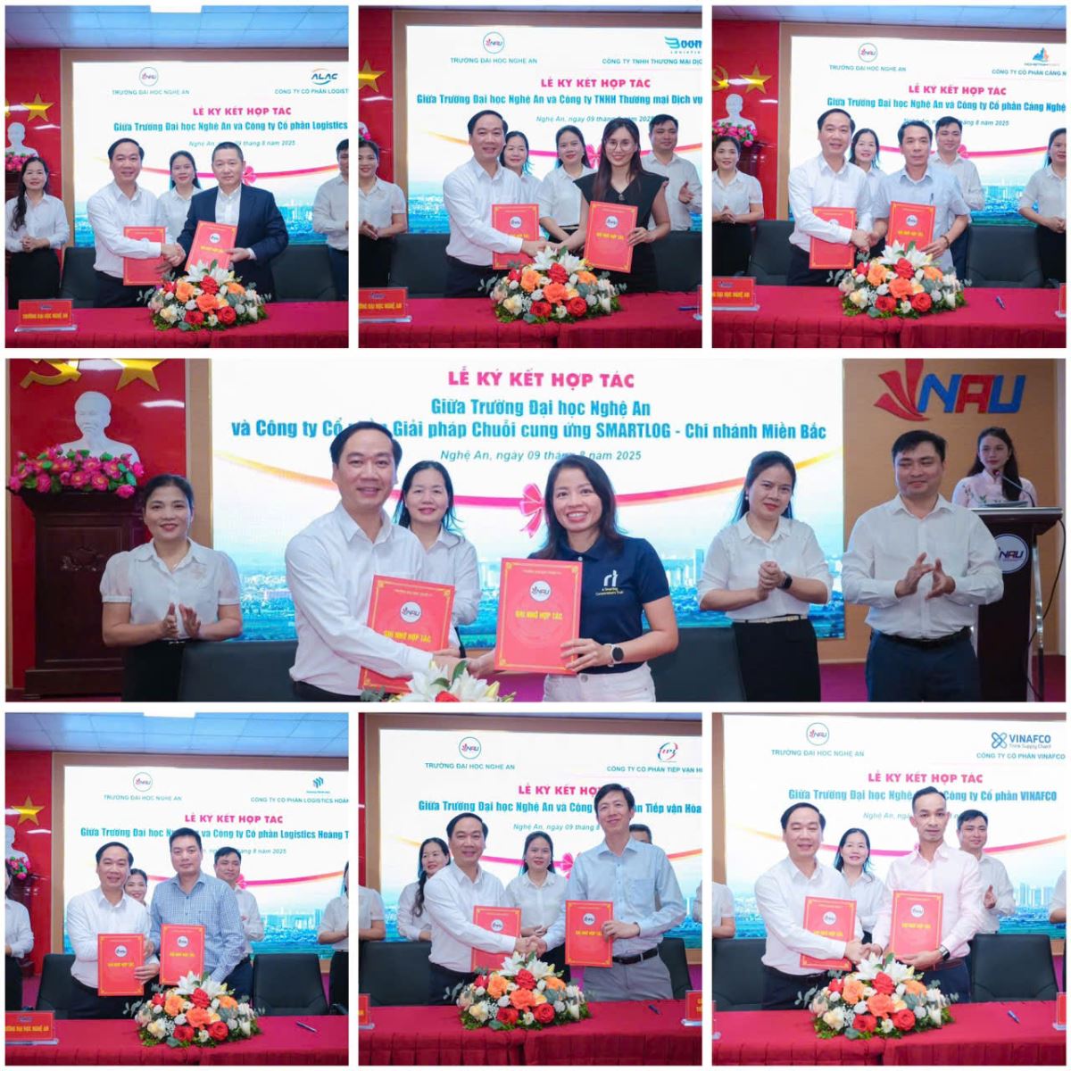 Chiều ngày 9/8/2025, tại Trường Đại học Nghệ An (NAU) đã diễn ra chương trình làm việc và ký kết hợp tác với Hiệp hội Phát triển nhân lực Logistics Việt Nam (VALOMA) cùng nhiều doanh nghiệp uy tín trong lĩnh vực logistics. Sự kiện đánh dấu bước tiến quan trọng trong chiến lược mở rộng quan hệ hợp tác, nâng cao chất lượng đào tạo, gắn kết nhà trường với thị trường lao động.