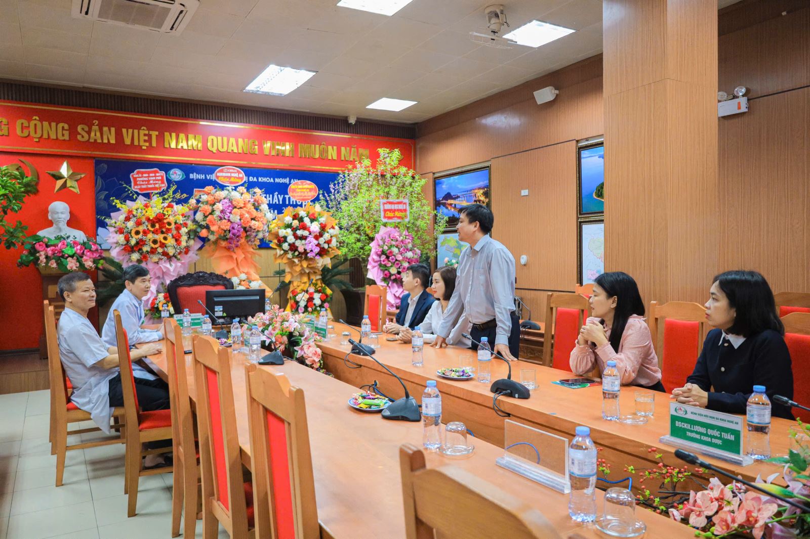 Tại đây, đoàn công tác Trường Đại học Nghệ An đã gửi lời chúc mừng tốt đẹp tới Ban Giám đốc cùng toàn thể cán bộ, y bác sĩ của Bệnh viện; đồng thời bày tỏ sự trân trọng trước những nỗ lực không ngừng trong nâng cao chất lượng chuyên môn, ứng dụng kỹ thuật hiện đại và chăm sóc người bệnh bằng tinh thần trách nhiệm cao nhất.