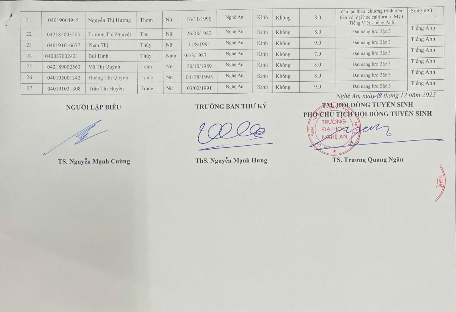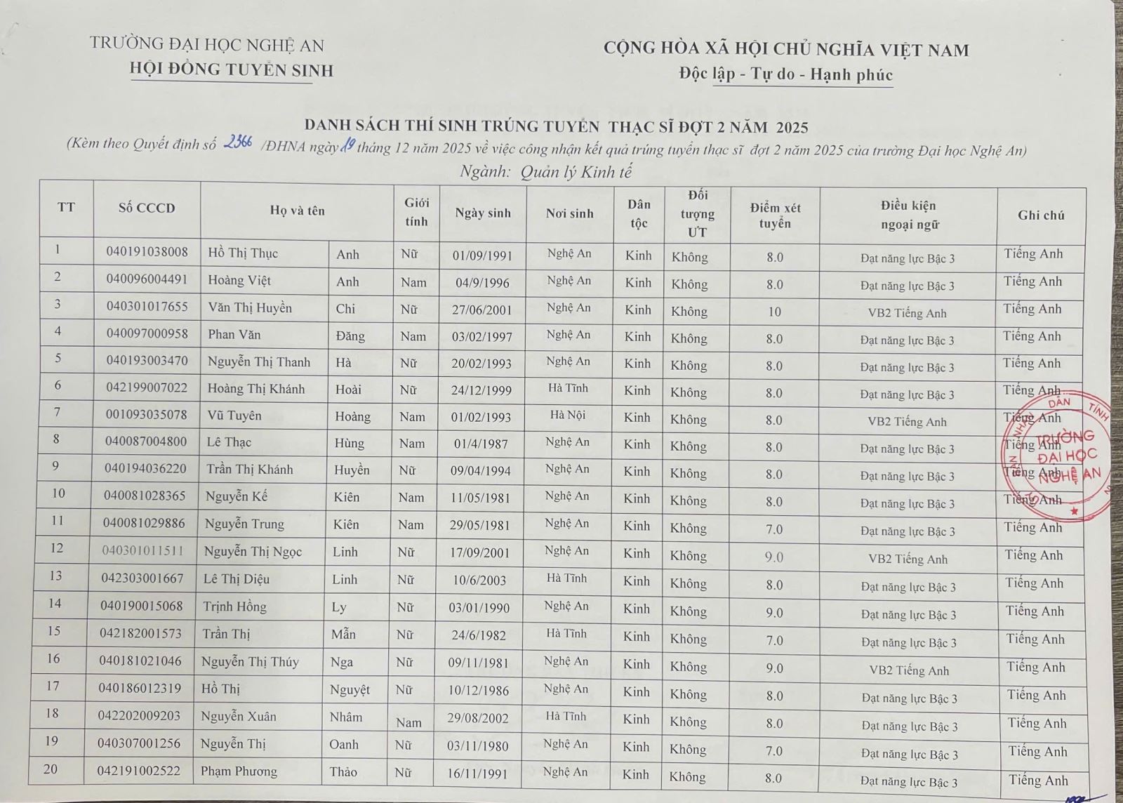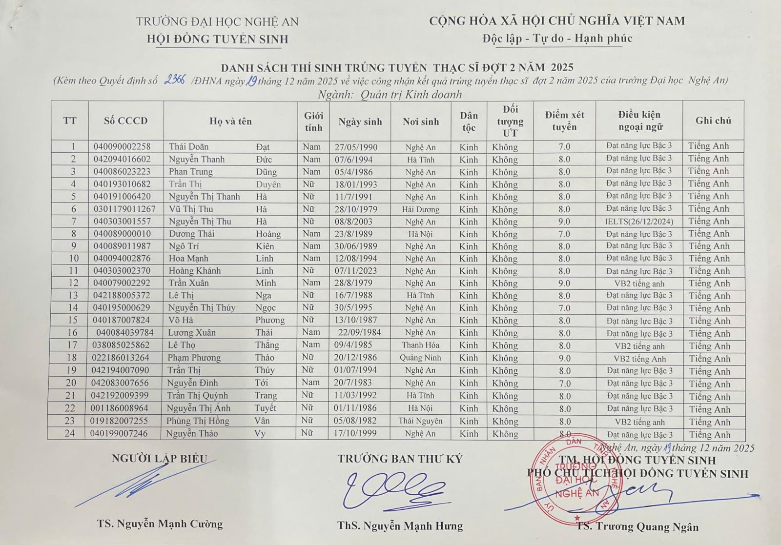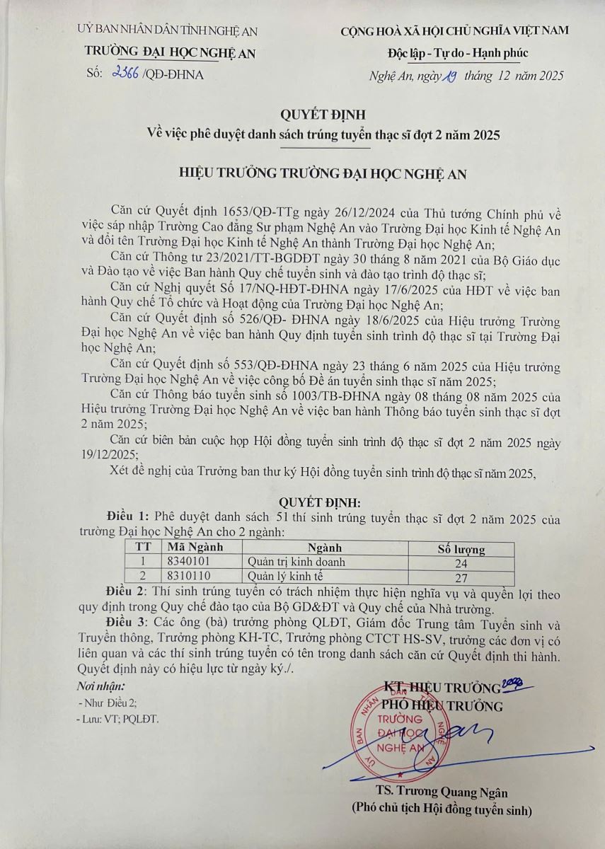 Quyết định về việc phê duyệt danh sách trúng tuyển Thạc sĩ đợt 2 năm 2025 19/12/2025 02:14 48 lượt xem