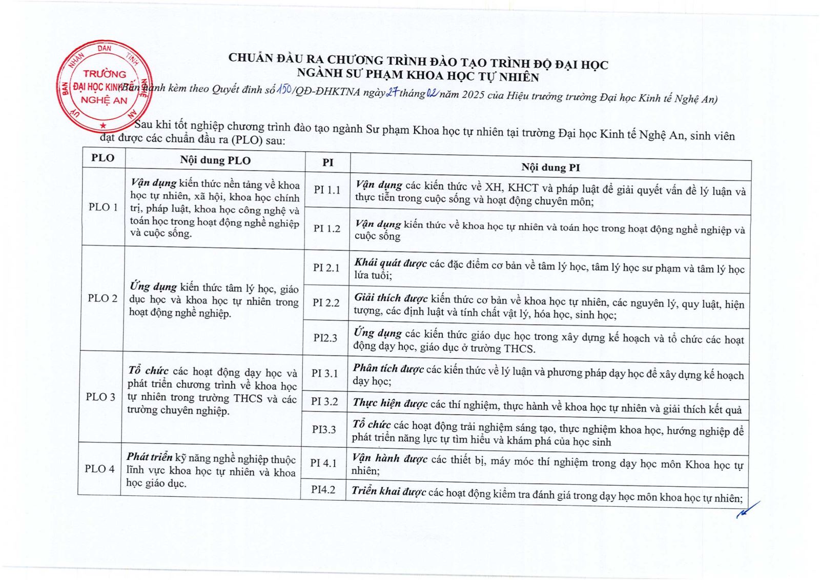 Bản mô tả Chương trình đào tạo Hệ đại học Chính quy ngành Sư phạm khoa học tự nhiên 17/02/2025 05:46 1103 lượt xem