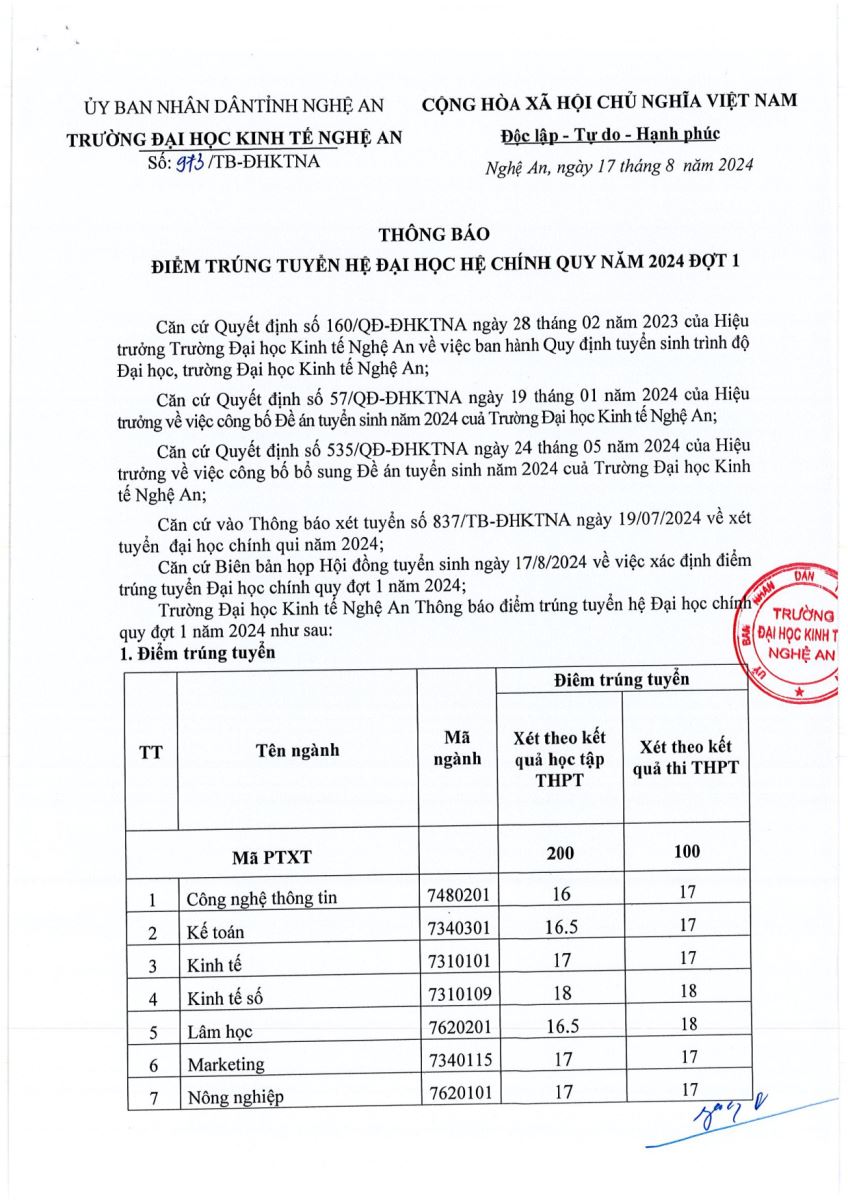 2. Điểm trúng tuyển đại học Hệ chính quy năm 2024 - đợt 1