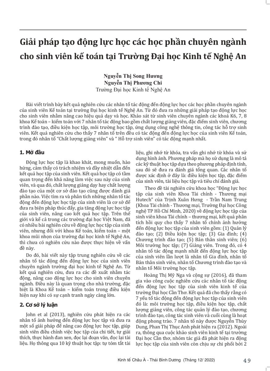 Giải pháp tạo động lực học các học phần chuyên ngành cho sinh viên kế toán tại Trường ĐH kinh tế Nghệ An 23/09/2023 11:46 4343 lượt xem