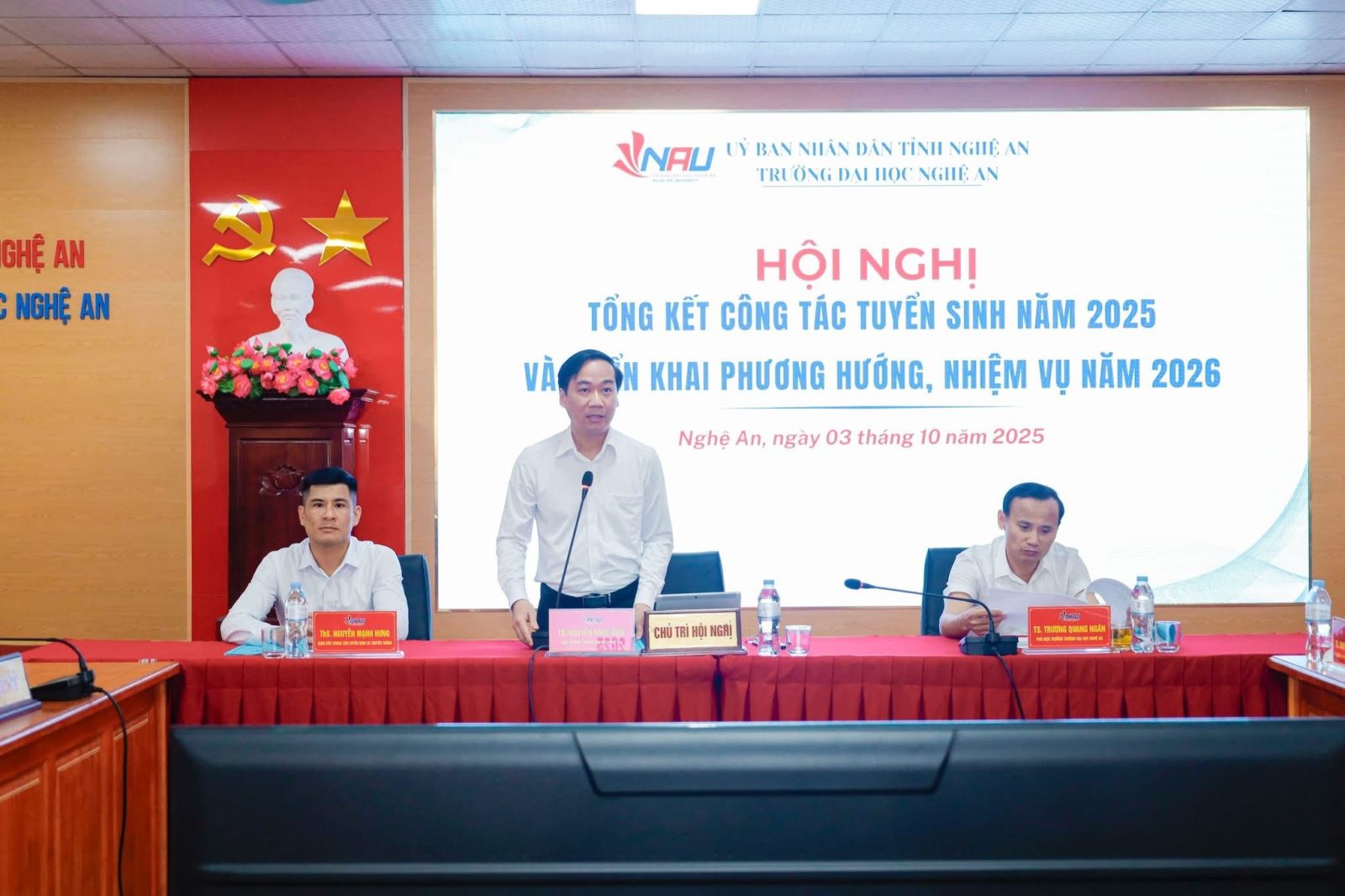 Chiều ngày 03/10/2025, Trường Đại học Nghệ An đã tổ chức Hội nghị tổng kết công tác tuyển sinh năm 2025 và triển khai phương hướng, nhiệm vụ năm 2026.