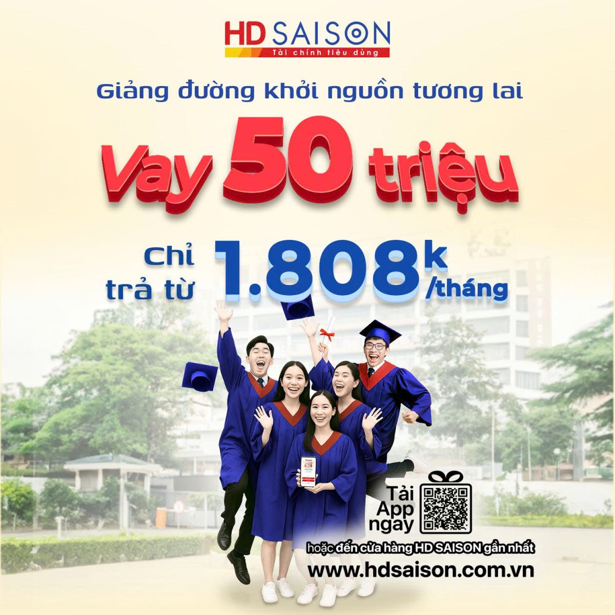 Nhằm tiếp tục mở rộng lựa chọn hỗ trợ tài chính, Nhà trường thông tin đến sinh viên về chương trình “Giảng đường khởi nguồn tương lai” do Công ty Tài chính tiêu dùng HD SAISON triển khai, cung cấp gói vay đóng học phí với lãi suất ưu đãi, thủ tục đơn giản, đăng ký hoàn toàn trực tuyến.