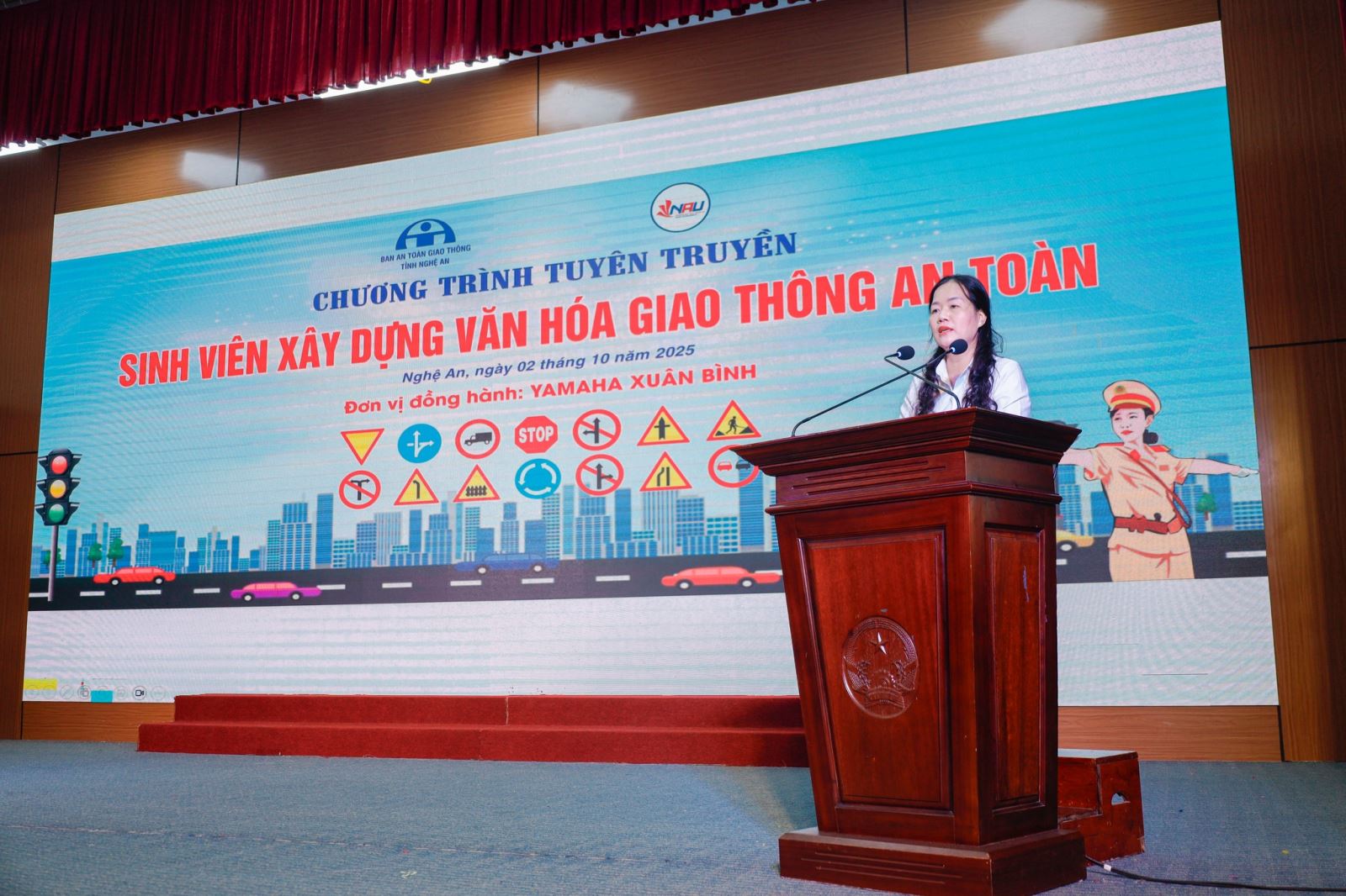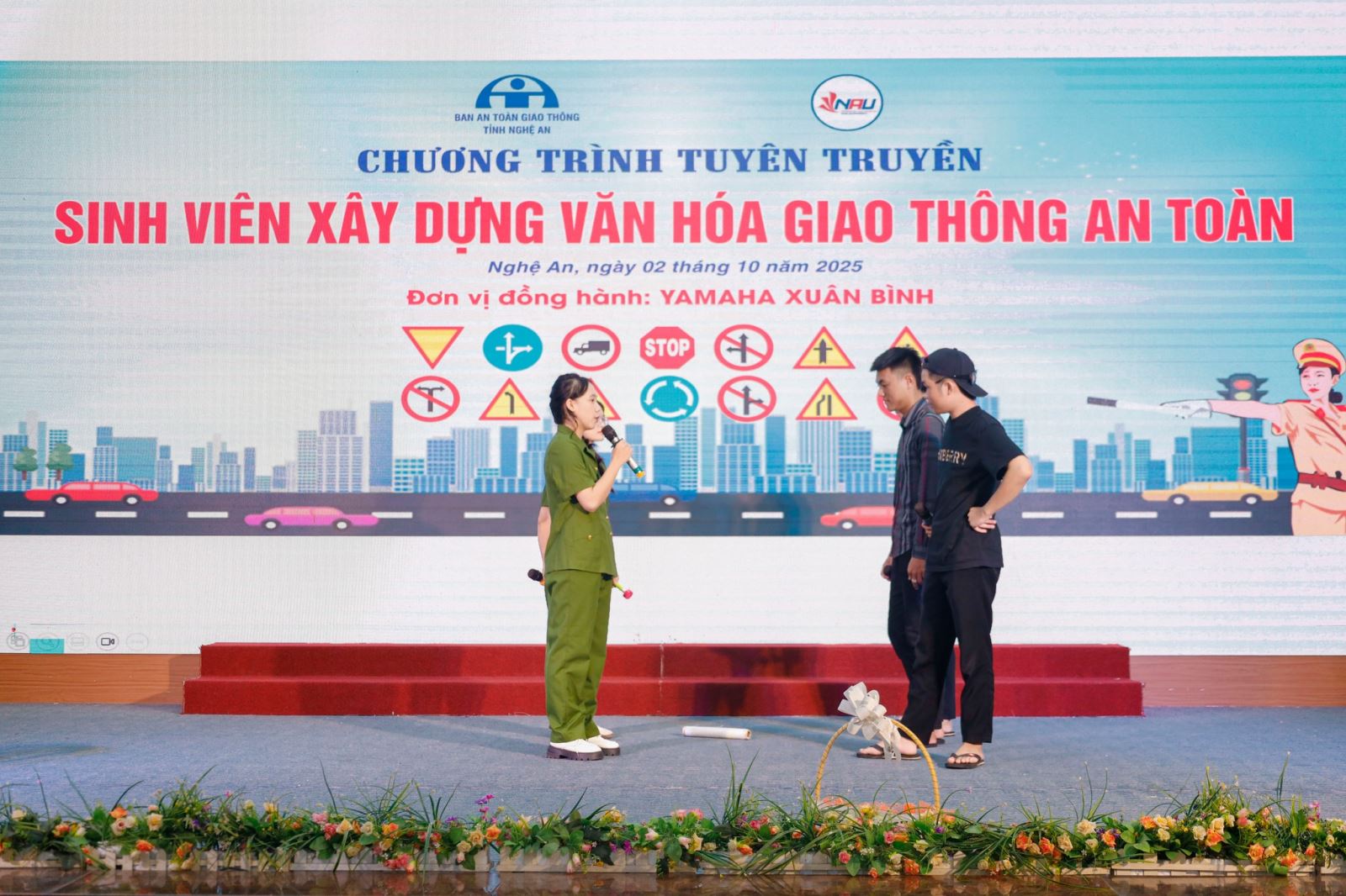 Sáng ngày 02/10/2025, tại Trường Đại học Nghệ An đã diễn ra Chương trình “Sinh viên xây dựng Văn hóa giao thông an toàn năm 2025”, do Ban An toàn giao thông tỉnh Nghệ An phối hợp với Trường Đại học Nghệ An và các đơn vị đồng hành Yamaha Xuân Bình, Head Honda Hưng Phát tổ chức.