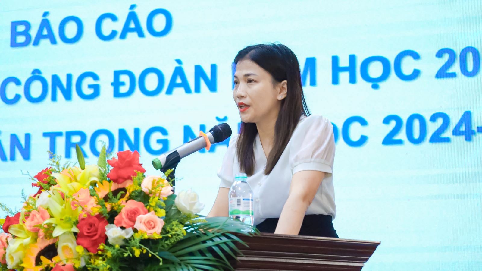 TS. Đặng Thị Thảo - Chủ tịch Công đoàn trường trình bày Báo cáo kết quả quả hoạt động của Công đoàn trường năm học 2023-2024 và triển khai nhiệm vụ năm học 2024-2025