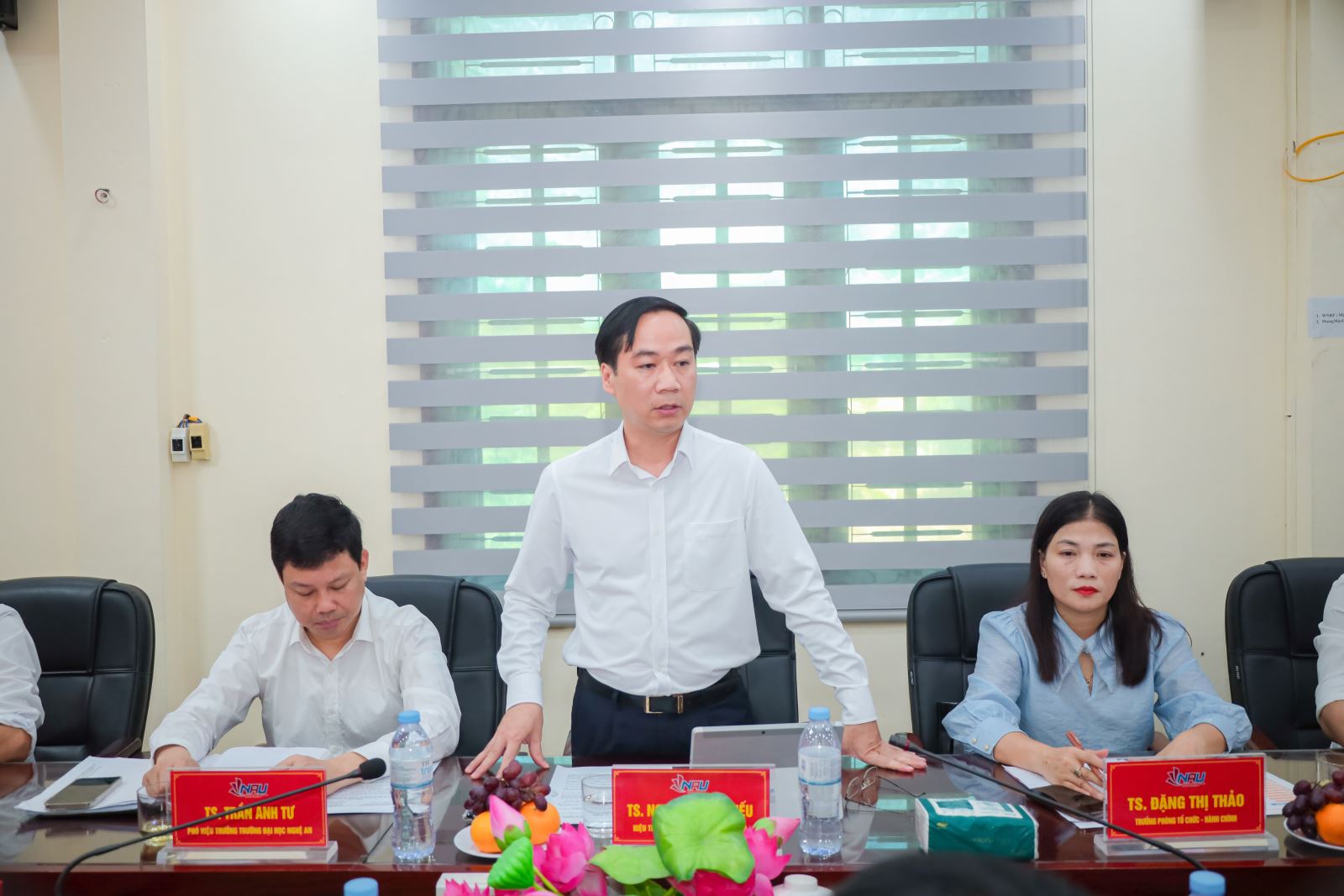 TS. Nguyễn Ngọc Hiếu - Hiệu trưởng Nhà trường phát biểu tại buổi làm việc