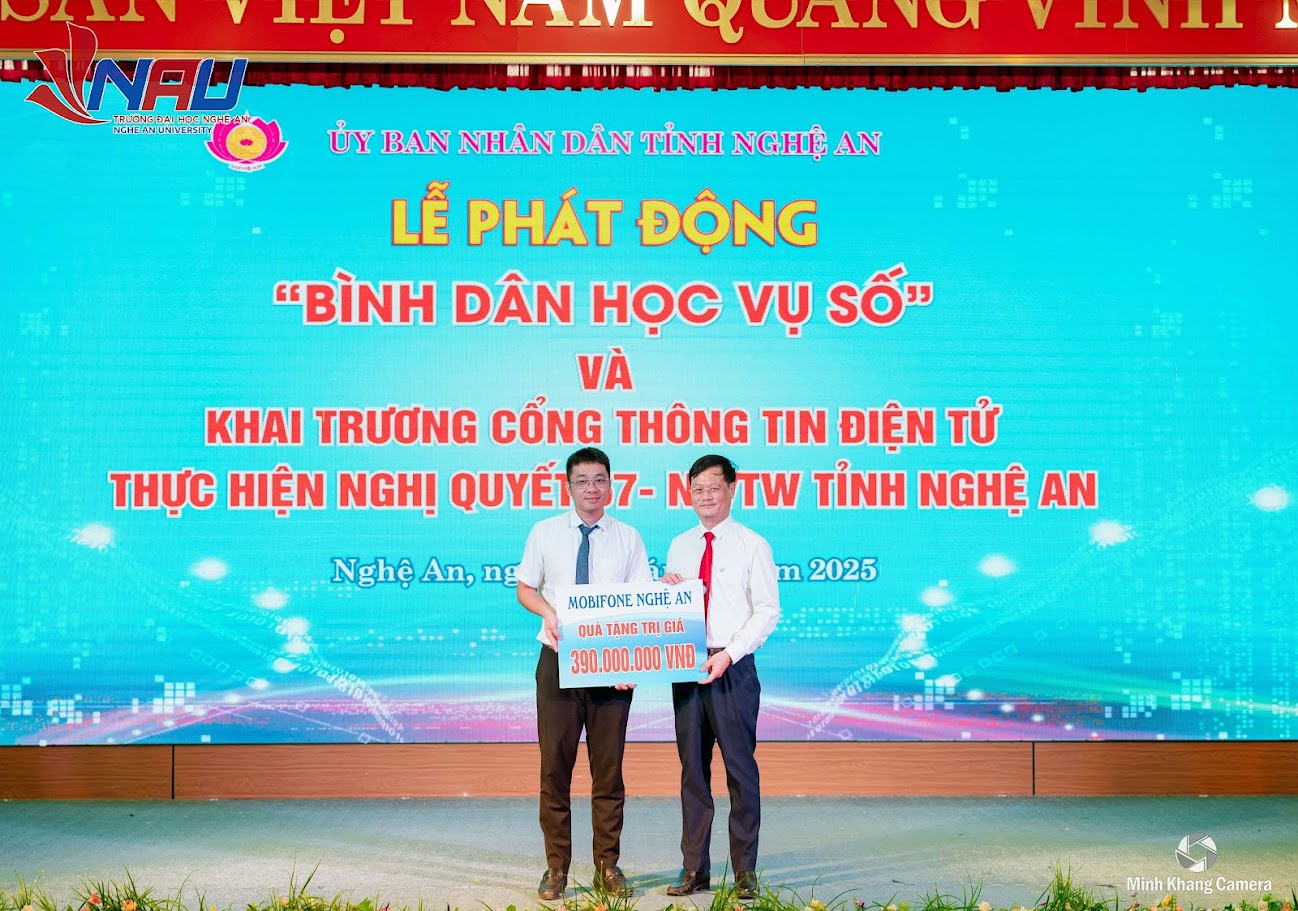 Phong trào “Bình dân học vụ số” được phát động tại Trường Đại học Nghệ An và được triển khai trên toàn tỉnh, tổ chức trực tiếp kết hợp trực tuyến đến các điểm cầu cấp huyện, cấp xã. Điều này đòi hỏi một hạ tầng viễn thông và internet mạnh mẽ, phủ sóng rộng khắp để đảm bảo mọi người dân đều có thể tiếp cận kiến thức và kỹ năng số (sử dụng điện thoại thông minh, thanh toán điện tử, dịch vụ công trực tuyến, bảo vệ dữ liệu cá nhân). Sự ủng hộ từ các nhà mạng lớn như Mobifone, VNPT, và Viettel Nghệ An với việc trao quà tặng ủng hộ chương trình cho thấy tầm quan trọng của kết nối số trong việc thực hiện mục tiêu này.