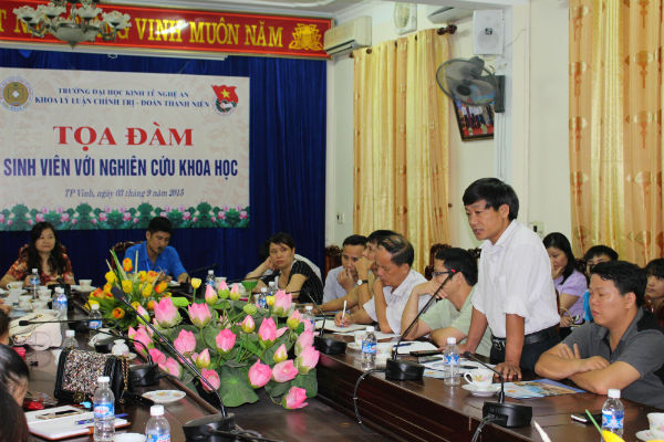 Khoa Lý luận chính trị - Đoàn trường tổ chức thành công buổi tọa đàm Sinh viên với nghiên cứu khoa học 05/09/2015 09:58 7327 lượt xem Nhằm đẩy mạnh hoạt động nghiên cứu khoa học trong sinh viên, ngày 03/9/2015 Khoa Lý luận chính trị phối hợp với Đoàn Thanh niên nhà trường tổ chức buổi tọa đàm “Sinh viên với nghiên cứu khoa học”.
