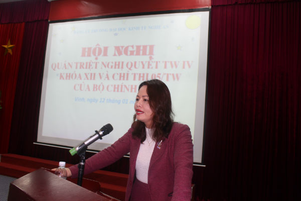 Đồng chí Trần Thị Hồng – Phó trưởng ban tuyên giáo Thành ủy yêu cầu sau hội nghị này, Đảng ủy nhà trường cần tiếp tục đẩy mạnh việc giáo dục chính trị, tư tưởng cho cán bộ, giảng viên, sinh viên nhà trường tự giác, gương mẫu thực hiện tốt Chỉ thị, Nghị quyết, nói đi đôi với làm. Đặc biệt chú trọng nêu gương người tốt, việc tốt, ngăn ngừa, cảnh báo, phê phán những việc làm sai trái, đấu tranh mạnh mẽ với chủ nghĩa cá nhân, thói ích kỷ, vụ lợi, tiếp tục quan tâm, chăm lo đời sống vật chất, tinh thần cho cán bộ, công nhân, viên chức, người lao động. Tập trung lãnh đạo, chỉ đạo hoàn thành tốt phương hướng hoạt động đã đề ra trong thời gian tới; đẩy mạnh thực hiện đồng bộ các giải pháp với quyết tâm chính trị cao nhất góp phần xây dựng Trường Đại học Kinh tế Nghệ An ngày càng phát triển./.
