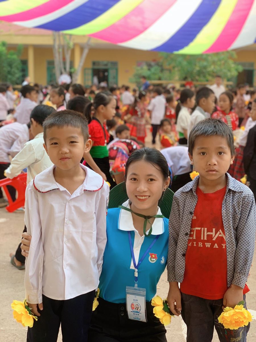 Sinh viên Bùi Thị Trà cùng đoàn đại biểu tham gia Hành trình Sinh viên với khát vọng non sông đã đến Trường PTDT bán trú tiểu học Nậm Vì (xã Nậm Vì, H.Mường Nhé, tỉnh Điện Biên) để thực hiện các hoạt động an sinh xã hội