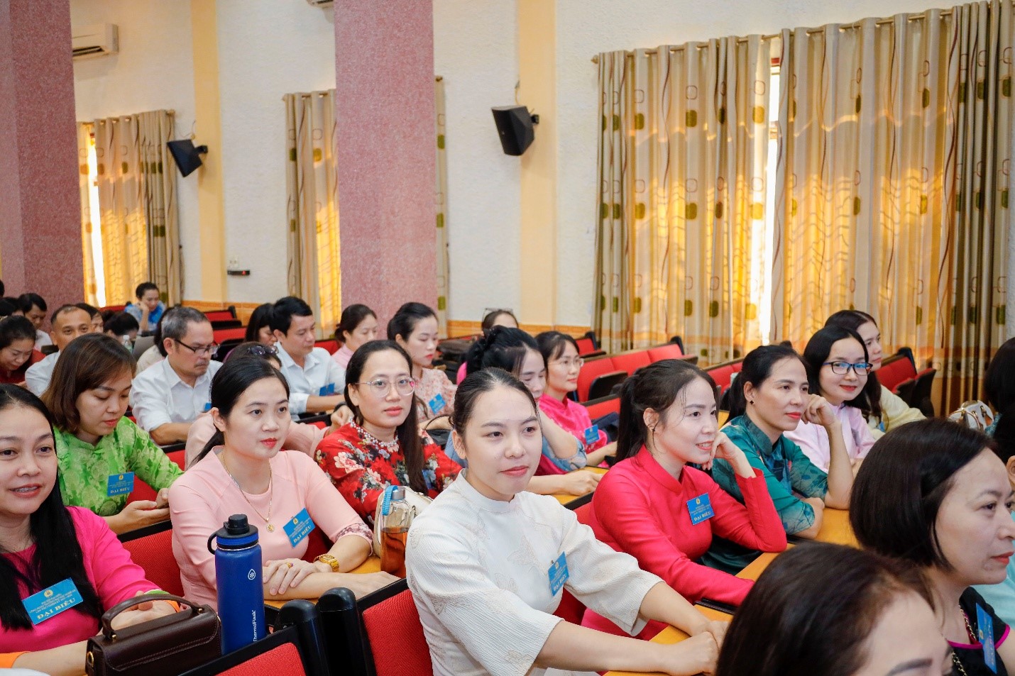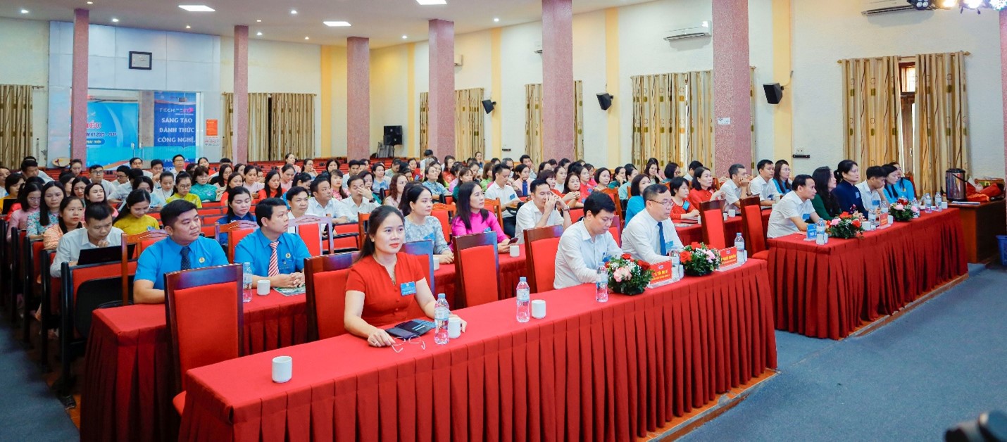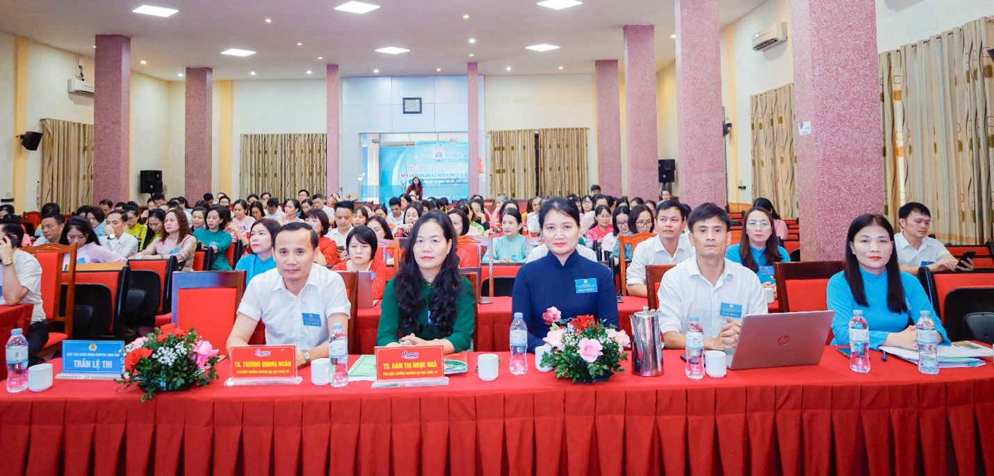 Đến dự Đại hội có Bà Trần Lệ Thi – Chủ tịch Công đoàn phường Vinh Phú; TS. Nguyễn Đình Tường – Bí thư Đảng ủy, Chủ tịch Hội đồng trường; các Phó Hiệu trưởng gồm TS. Trần Anh Tư, TS. Trương Quang Ngân, TS. Đàm Thị Ngọc Ngà; cùng các đại biểu đoàn viên tiêu biểu đến từ các tổ công đoàn trực thuộc. Chủ trì Đại hội là TS. Đặng Thị Thảo – Chủ tịch Công đoàn Trường.