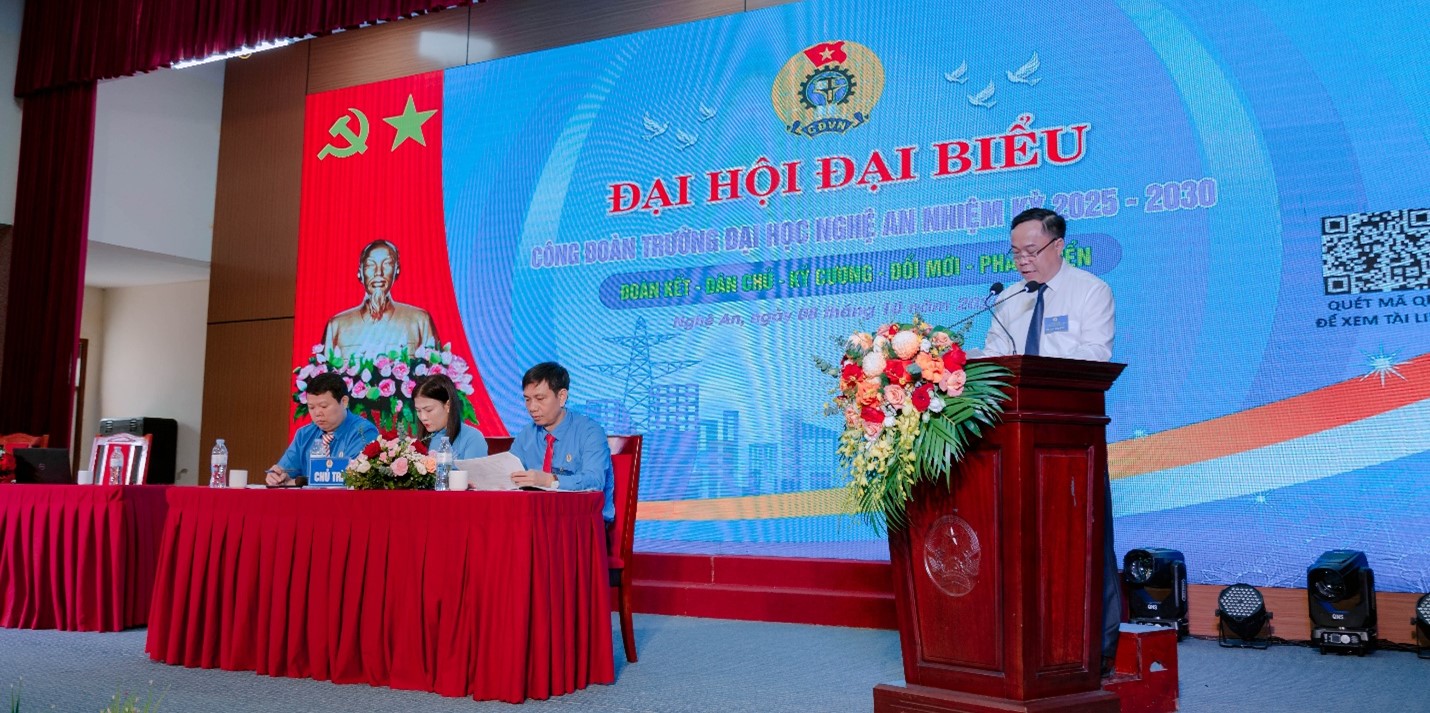 Ngày 08 tháng 10 năm 2025, tại Trường Đại học Nghệ An đã long trọng diễn ra Đại hội Công đoàn lần thứ I, nhiệm kỳ 2025–2030. Đây là sự kiện chính trị quan trọng, đánh dấu bước phát triển mới của tổ chức công đoàn sau quá trình sáp nhập và tái cấu trúc, đồng thời thể hiện tinh thần đoàn kết, dân chủ, đổi mới và phát triển của tập thể viên chức, người lao động toàn trường.