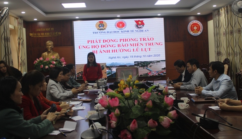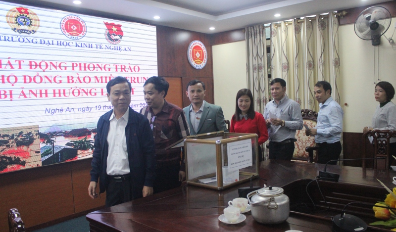 Phát huy tinh thần “Tương thân tương ái - lá lành đùm lá rách” và để cùng nhau chia sẻ với những khó khăn, mất mát của đồng bào ở các tỉnh Quảng Bình, Quảng Trị, Thừa Thiên Huế nói chung, trong đó có gia đình các sinh viên đang học tập tại trường Đại học Kinh tế Nghệ An nói riêng đã bị ảnh hưởng nặng nề bởi đợt mưa lũ. Ban Chấp hành Công đoàn trường Đai học Kinh tế Nghệ An đã phát động kêu gọi toàn thể cán bộ, giảng viên, sinh viên của Nhà trường, các nhà hảo tâm chung tay ủng hộ để nhân dân và các em sinh viên vùng bị ảnh hưởng nặng nề bởi thiên tai  sớm vượt qua khó khăn, ổn định cuộc sống và yên tâm học tập.