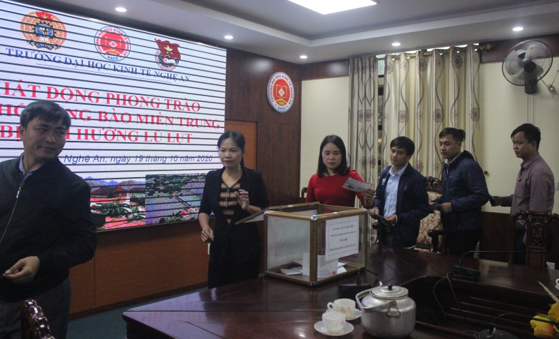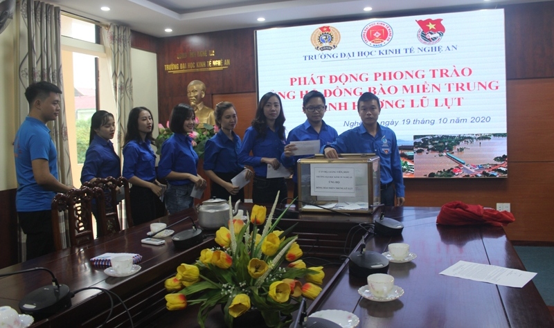 Ngày 19/10/2020, Công đoàn Trường Đại học Kinh tế Nghệ An phối hợp với Đoàn thanh niên đã phát động phong trào ủng hộ đồng bào miền Trung bị lũ lụt đến hơn 170 cán bộ, giảng viên, công nhân viên chức trong toàn Trường đã trực tiếp quyên góp hơn 25 triệu đồng; số tiền của cán bộ, giảng viên, công nhân viên, sinh viên của toàn Trường ủng hộ Nhân dân các tỉnh miền Trung bị thiệt hại do thiên tai lũ lụt tuy không lớn, nhưng là tấm lòng tương thân tương ái, giúp đỡ bà con lúc khó khăn hoạn nạn.