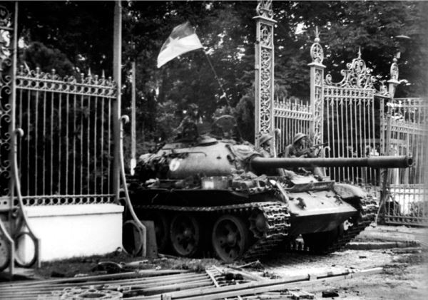 Xe tăng quân giải phóng tiến vào Dinh Độc Lập, ngày 30/4/1975. Tác giả: Trần Mai Hưởng