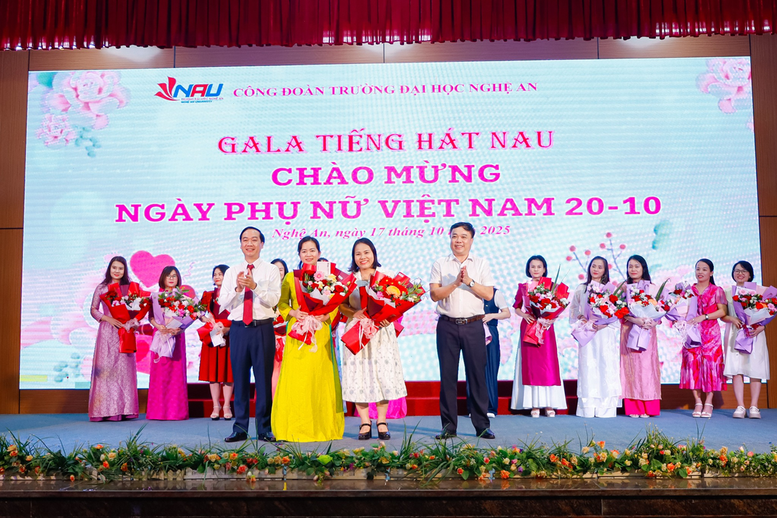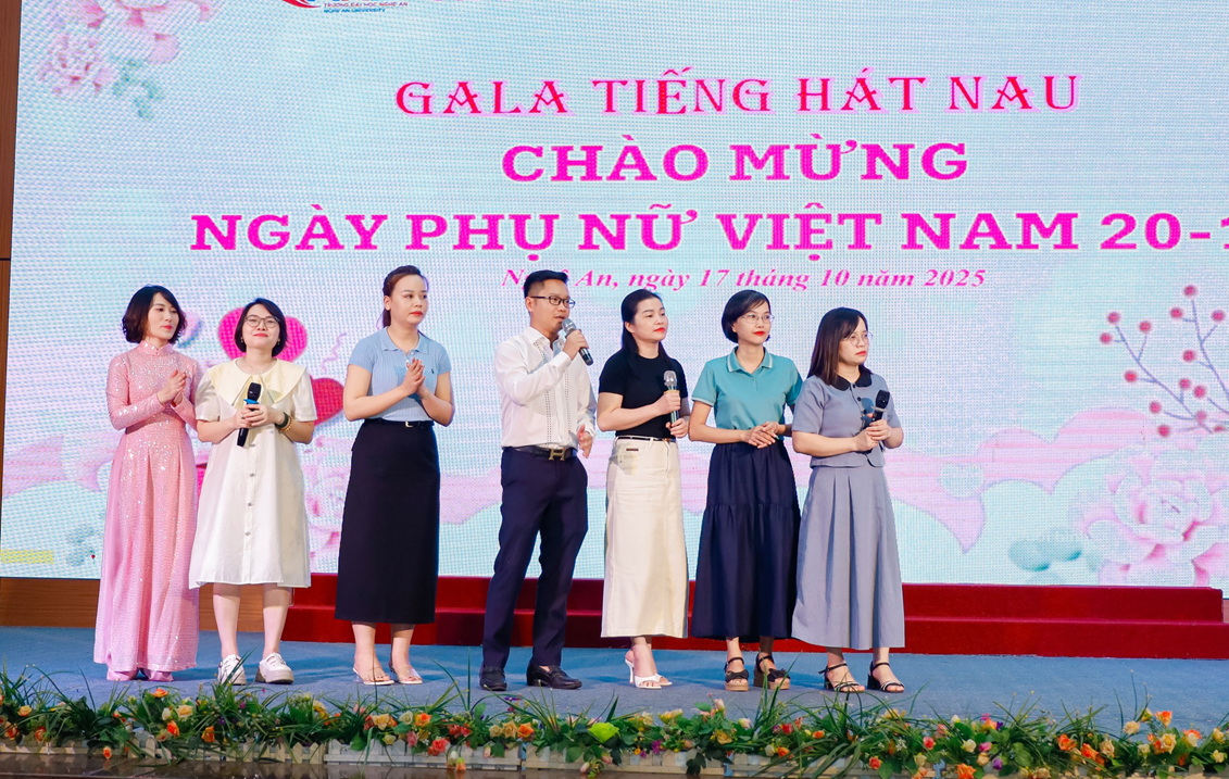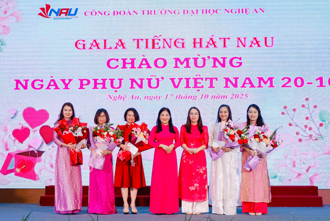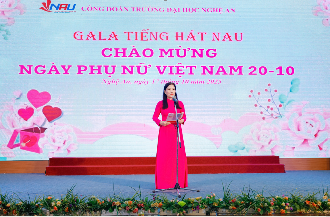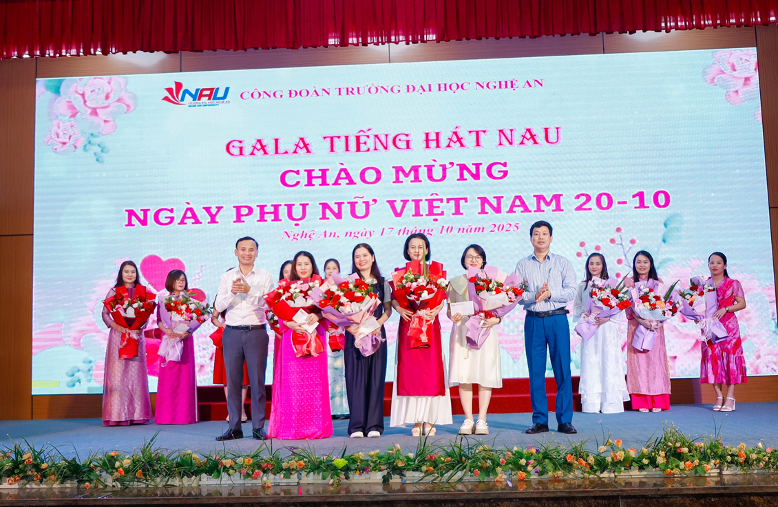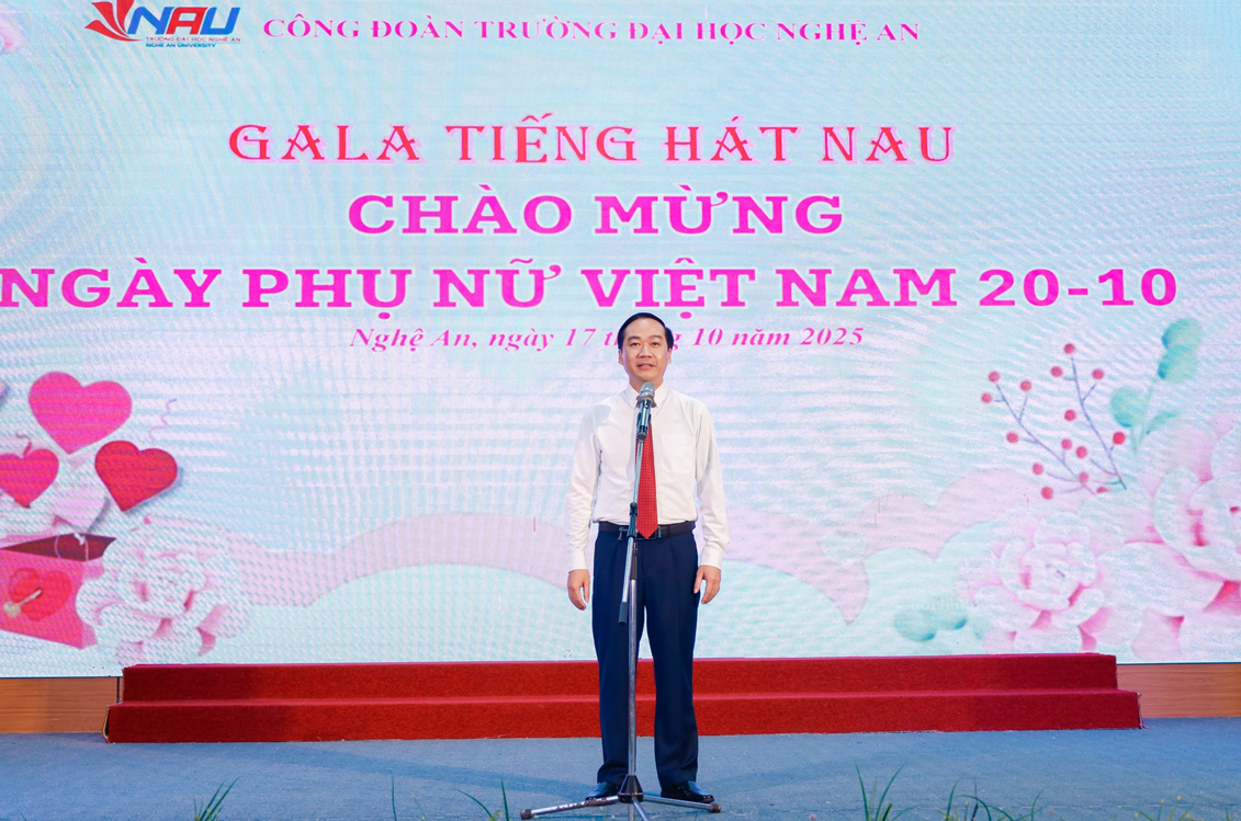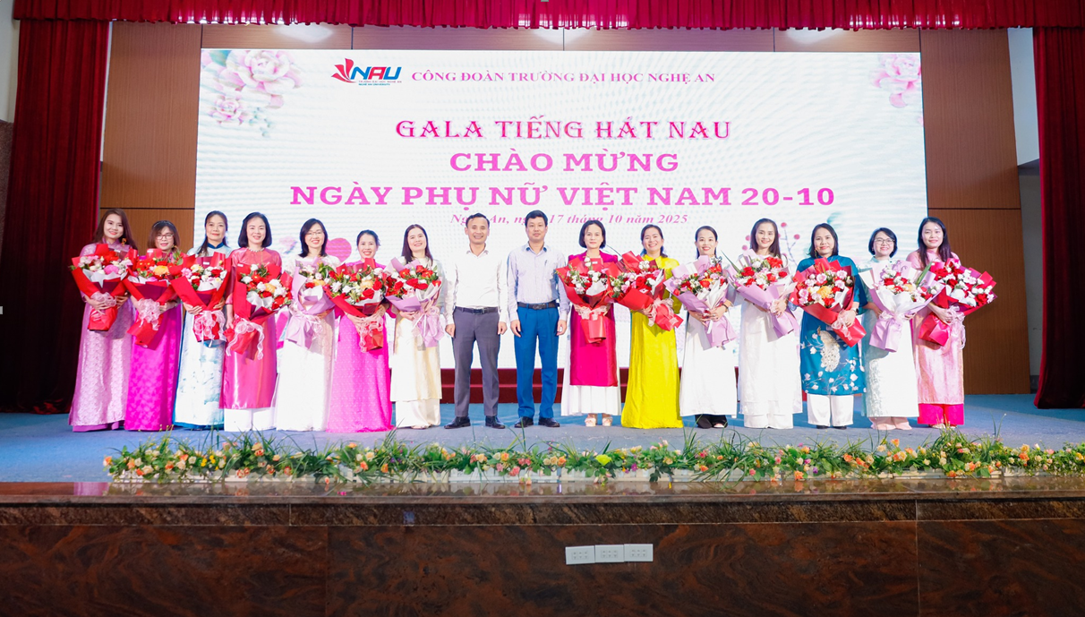 Nhằm chào mừng Ngày Phụ nữ Việt Nam 20/10 và tạo không khí vui tươi, gắn kết trong toàn thể cán bộ, giảng viên, người lao động, tối ngày 18 tháng 11 năm 2025, tại Hội trường A1, Công đoàn Trường Đại học Nghệ An đã tổ chức chương trình Gala “Tiếng hát NAU” - một sân chơi âm nhạc sôi động và đầy cảm xúc.