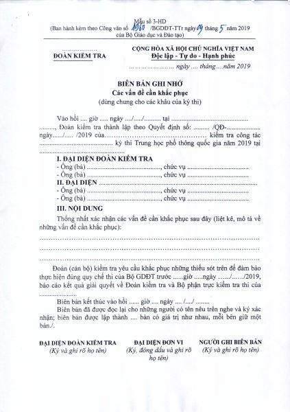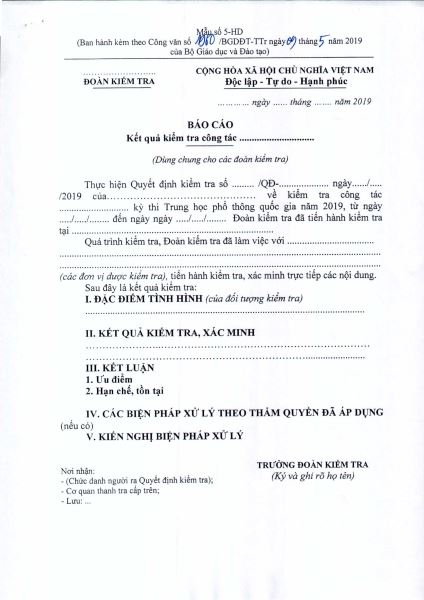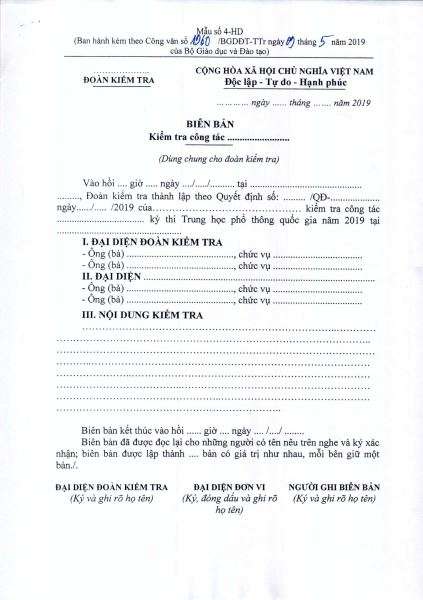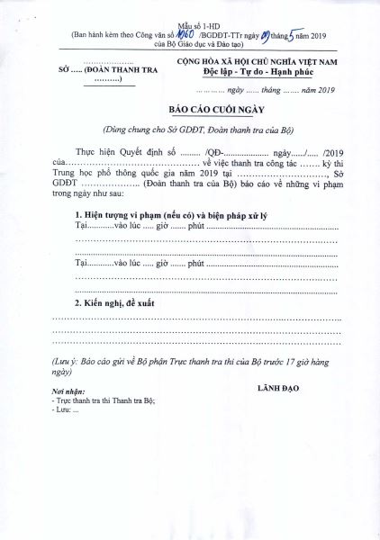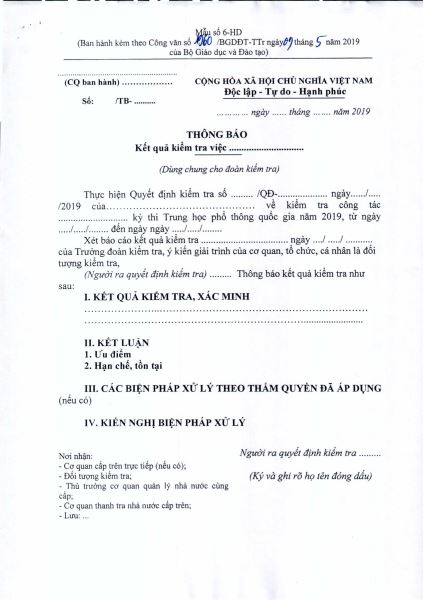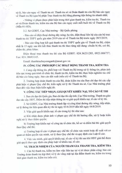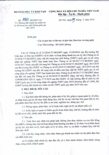 Công văn số 1960/BGDĐT-TTr về việc Hướng dẫn thanh tra, kiểm tra kỳ thi THPT quốc gia năm 2019 24/05/2019 02:33 6728 lượt xem Download văn bản tại đây.