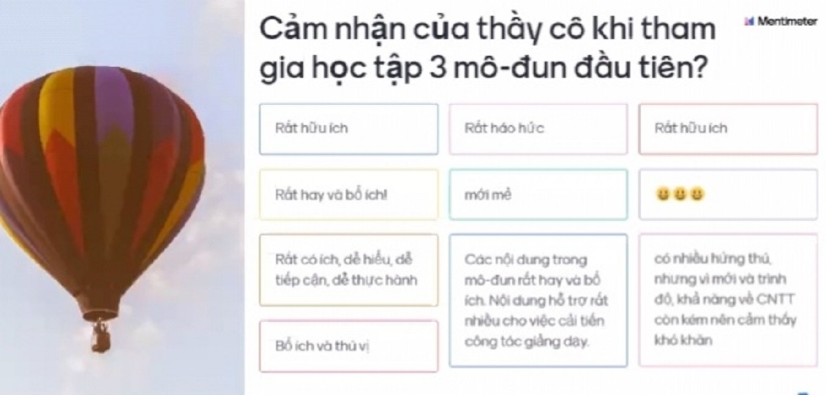 Mở đầu buổi seminar, Ths. Nguyễn Tuyết Anh - giảng viên Trung tâm hỗ trợ giảng dạy - Viện Đảm bảo chất lượng giáo dục đã có bài test giành cho các học viên về cảm nhận sau khi tham gia học tập 3 mô-đun đầu tiên. Kết quả khảo sát cho thấy tất cả các học viên đều nhận thấy khóa tập huấn rất hữu ích, các nội dung trong mô-đun rất hay và bổ ích, hỗ trợ rất nhiều cho việc cải tiến công tác giảng dạy, do đó rất nghiêm túc tham gia học tập các mô-đun của chương trình.