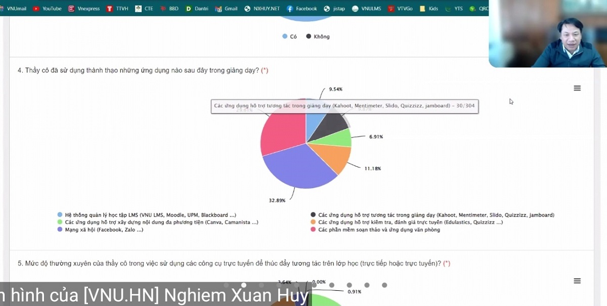 Buổi seminar cũng đã được nghe ThS. Ngô Tiến Nhật giảng viên Trung tâm hỗ trợ giảng dạy - Viện Đảm bảo chất lượng giáo dục trao đổi về M2 - Thiết kế khảo sát và công cụ khảo sát trực tuyến trong giảng dạy và nghiên cứu và giải đáp những vướng mắc của các học viên liên quan đến mô-đun này.