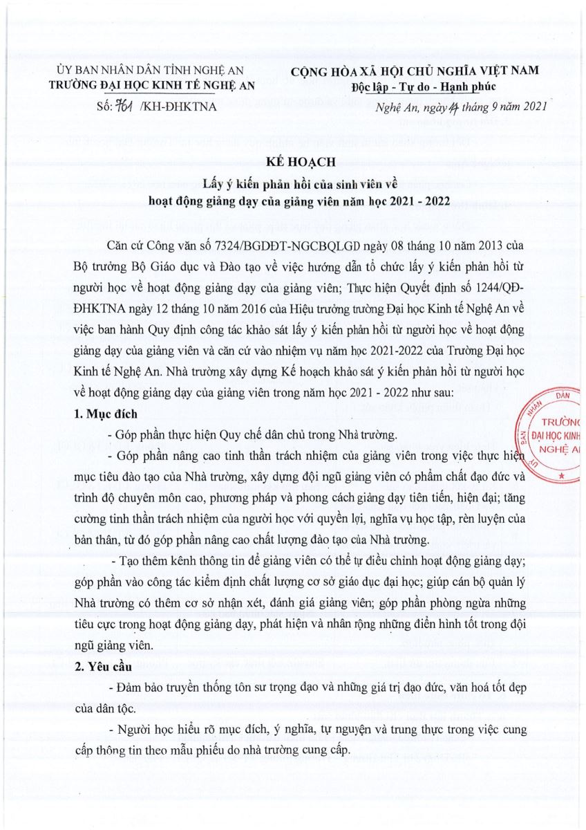 Kế hoạch lấy ý kiến phản hồi của sinh viên về hoạt động giảng dạy của giảng viên năm học 2021-2022 21/09/2021 10:39 4959 lượt xem