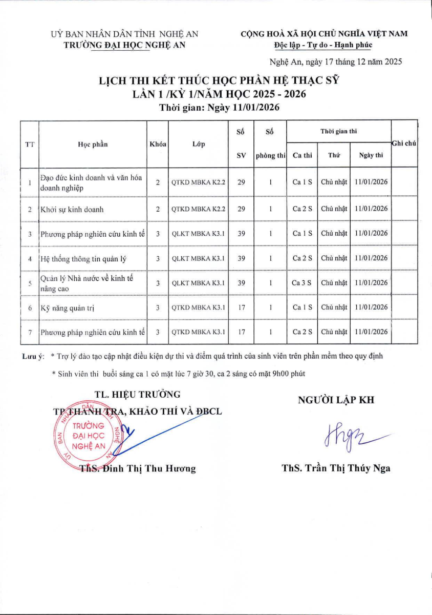 Lịch thi kết thúc học phần hệ Thạc sĩ lần thứ 1 - Kỳ 1 năm học 2025-2026 17/12/2025 09:01 230 lượt xem