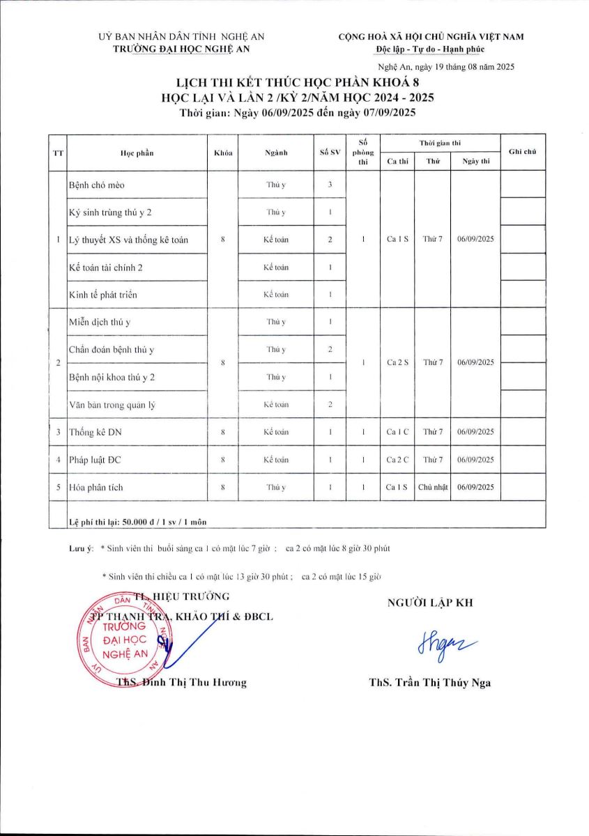 Lịch thi kết thúc học phần Khóa 8 học lại và lần 2, kỳ 2, năm học 2024-2025 19/08/2025 09:19 1120 lượt xem