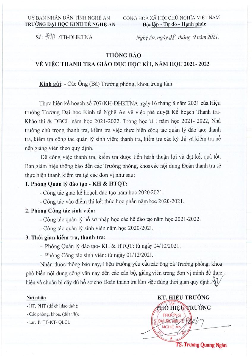 2. Thông báo về việc Thanh tra giáo dục Học kỳ I năm học 2021-2022