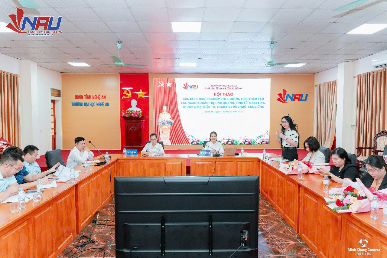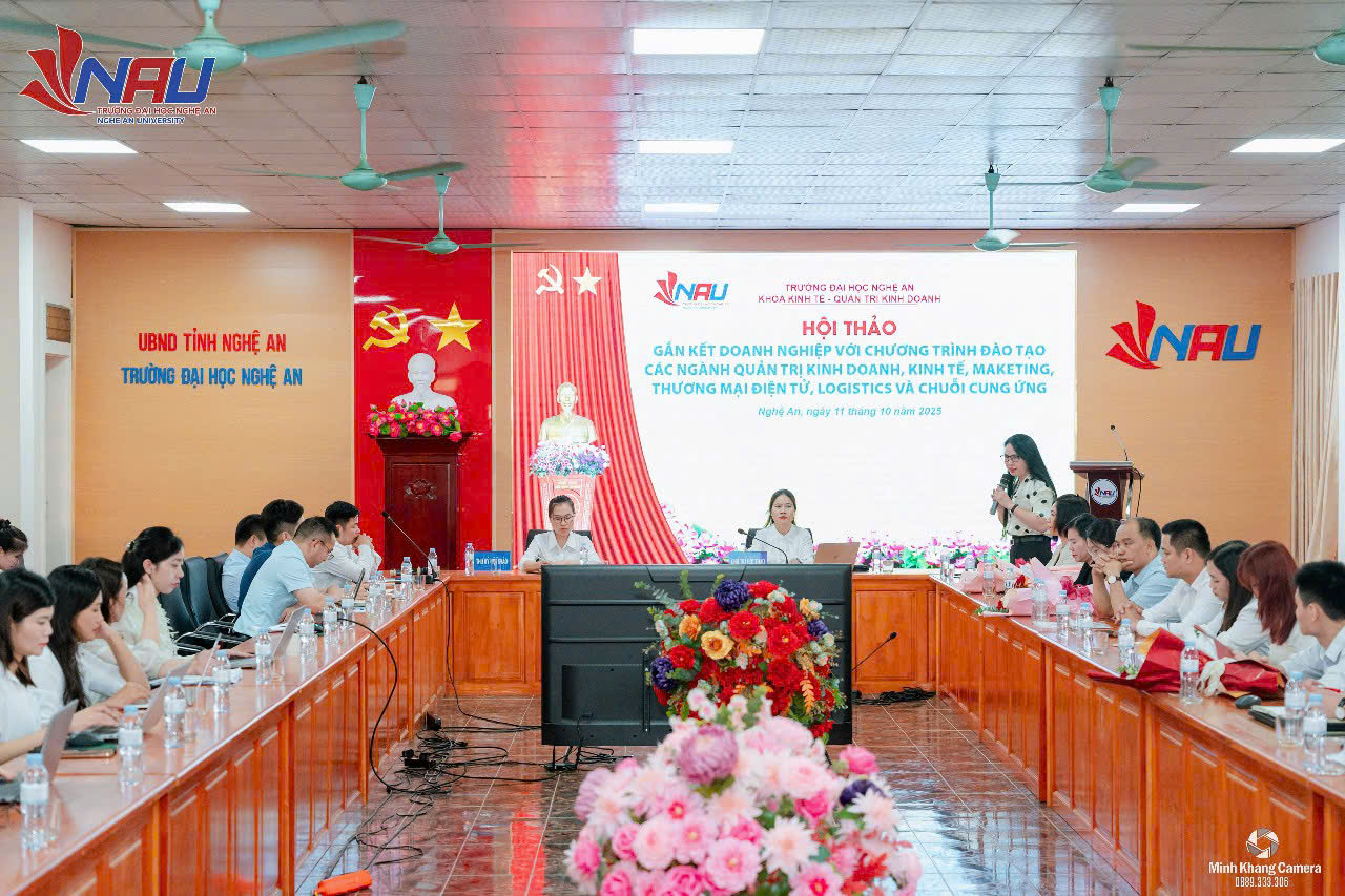 Trong khuôn khổ Hội thảo khoa học “Hợp tác giữa Doanh nghiệp và Trường Đại học Nghệ An” diễn ra sáng ngày 11/10/2025, Phiên làm việc thứ hai đã được dành riêng cho hoạt động trao đổi, kết nối giữa các doanh nghiệp với Khoa Kinh tế – Quản trị Kinh doanh. Đây là dịp quan trọng để nhà trường và doanh nghiệp cùng chia sẻ kinh nghiệm, thảo luận các hướng hợp tác thiết thực, góp phần nâng cao chất lượng đào tạo và gắn kết chặt chẽ giữa lý thuyết với thực tiễn.