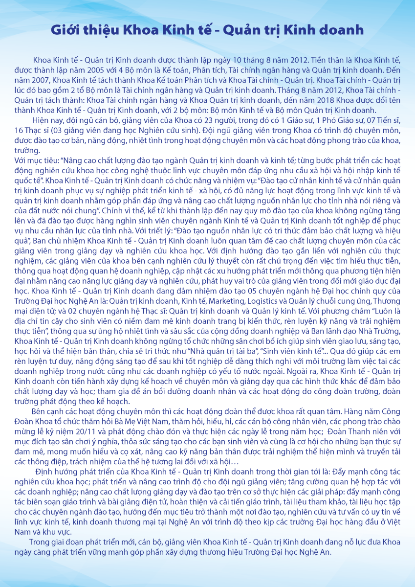 Giới thiệu Khoa Kinh tế - Quản trị Kinh doanh