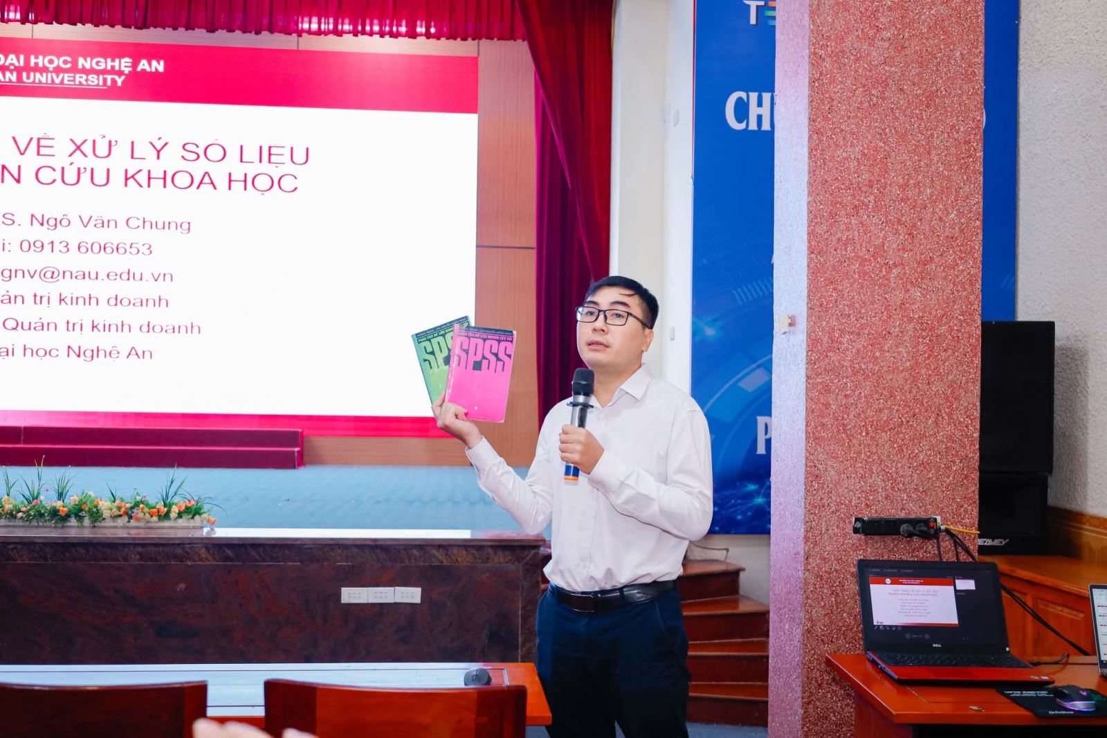 Sáng ngày 01/11/2025, tại Hội trường A1, Trường Đại học Nghệ An đã diễn ra Chương trình Tập huấn phương pháp Nghiên cứu Khoa học dành cho sinh viên năm học 2025–2026. Buổi tập huấn được tổ chức nhằm trang bị cho sinh viên những kiến thức nền tảng và kỹ năng thiết yếu trong quá trình thực hiện nghiên cứu khoa học – một hoạt động ngày càng được chú trọng trong môi trường đại học hiện nay.