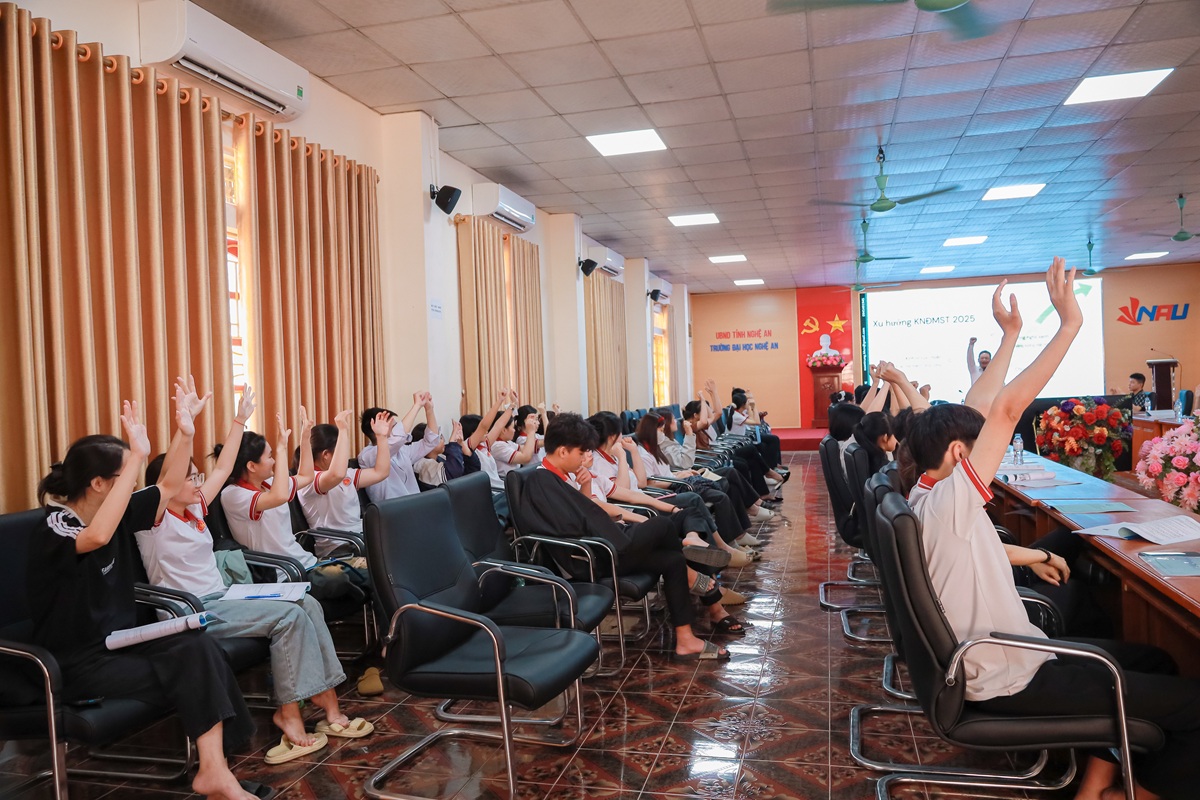 Buổi tập huấn có sự tham gia chia sẻ của ThS. Nguyễn Xuân Trung – Chuyên viên Phòng Quản lý Công nghệ, Sở Khoa học và Công nghệ tỉnh Nghệ An, đồng thời là huấn luyện viên khởi nghiệp đổi mới sáng tạo quốc gia. Với vốn hiểu biết sâu rộng và nhiều năm kinh nghiệm thực tiễn, diễn giả đã mang đến cho sinh viên những góc nhìn mới mẻ, gần gũi và đầy tính ứng dụng.