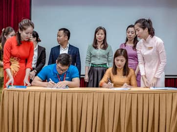 Trong buổi hội thảo, Khoa Kinh tế - Quản trị kinh doanh cũng đã tiến hành ký kết thỏa thuận liên kết đào tạo giữa Khoa với 4 doanh nghiệp trên địa bàn thành phố Vinh là Ngân hàng TMCP Quân đội chi nhánh Vinh, Khách sạn Mường Thanh Vinh, Tập đoàn VNPT chi nhánh Vinh và Công ty Sapo nhằm tạo điều kiện giúp sinh viên Khoa Kinh tế - Quản trị kinh doanh có cơ hội được trải nghiệm thực tế và thực tập tại các doanh nghiệp trên địa bàn.