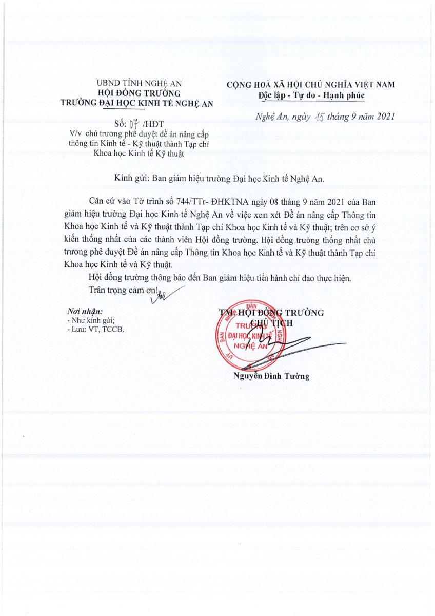 Công văn chủ trương phê duyệt đề án nâng cấp Thông tin Kinh tế và Kỹ thuật thành Tạp chí khoa học Kinh tế và Kỹ thuật 06/10/2021 10:50 4784 lượt xem