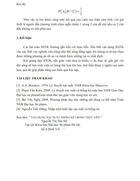 2. Vận dụng xác suất thống kê trong thực tiễn