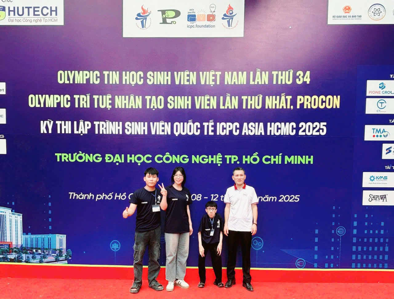Theo chương trình, vào chiều mai, Thứ Tư, ngày 10/12/2025, đội tuyển sẽ tham gia phần Thi giải cá nhân OLP’25. Đây là một trong những hoạt động trọng điểm nằm trong khuôn khổ Olympic Tin học Sinh viên Việt Nam và Olympic Trí tuệ Nhân tạo Sinh viên Việt Nam, được tổ chức tại Trường Đại học Công nghệ TP Hồ Chí Minh (HUTECH).
