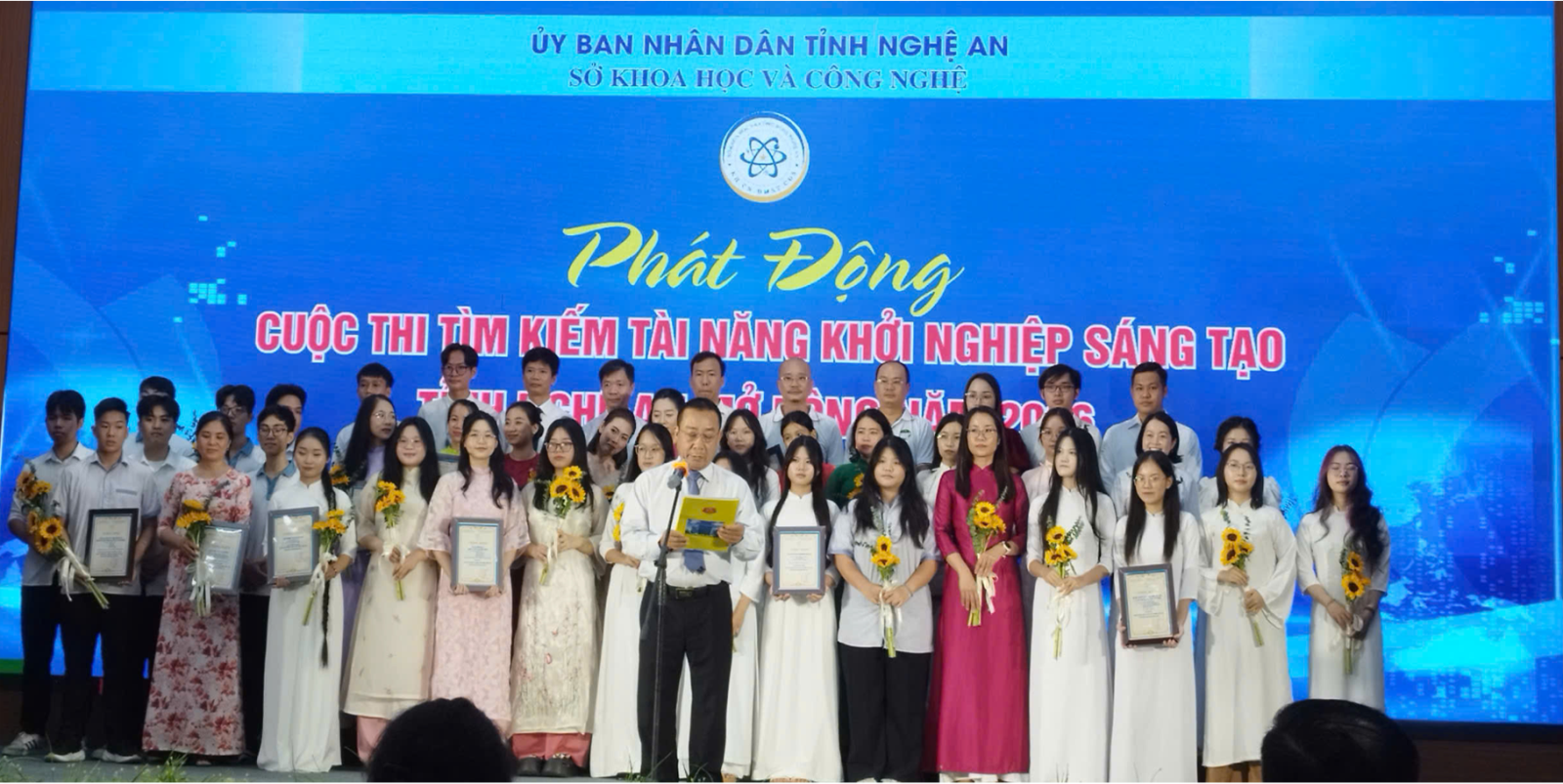 Ngày 10/10/2025, tại Cuộc thi “Tìm kiếm tài năng Khởi nghiệp Sáng tạo Tỉnh Nghệ An mở rộng năm 2025”, sinh viên Nguyễn Thị Trà Giang, lớp K10 Công nghệ Thông tin - Trường Đại học Nghệ An, đã xuất sắc giành Giải Khuyến khích với Dự án “CapMedia” – nền tảng thiết kế video thương hiệu độc quyền, giúp doanh nghiệp tiết kiệm chi phí và bảo vệ bản quyền nội dung trong kỷ nguyên truyền thông số.