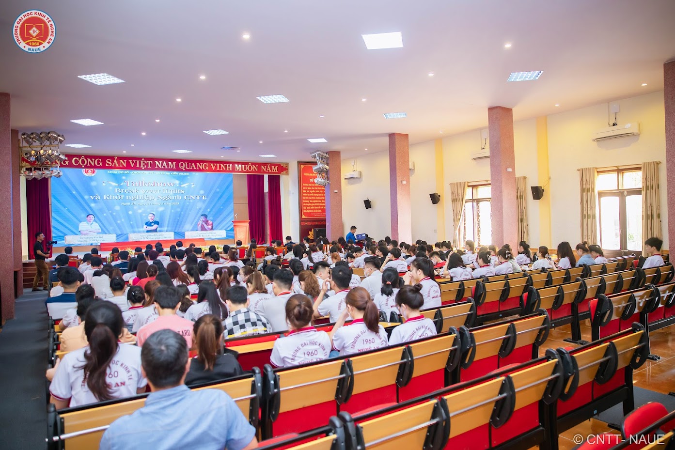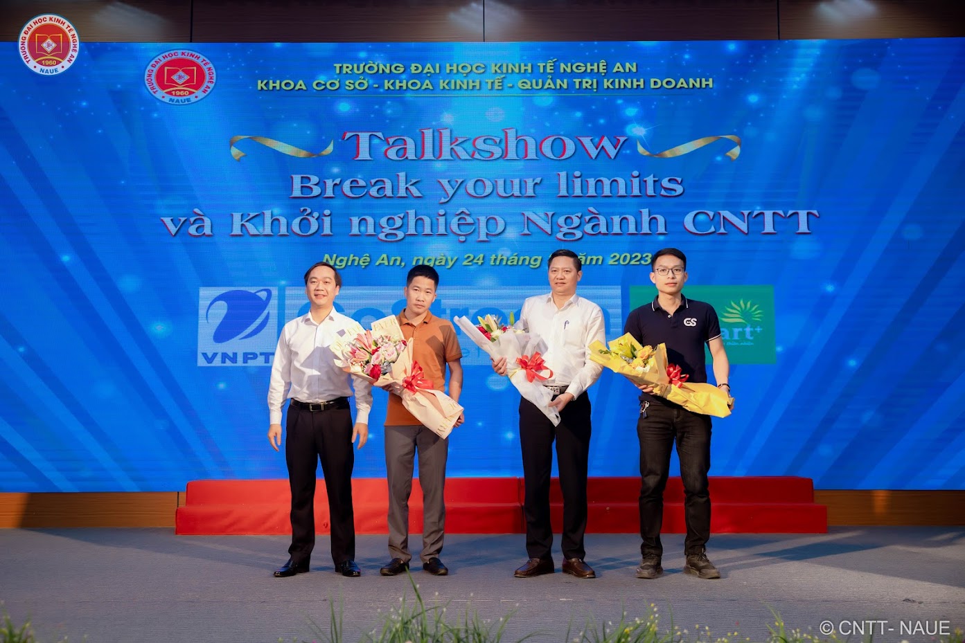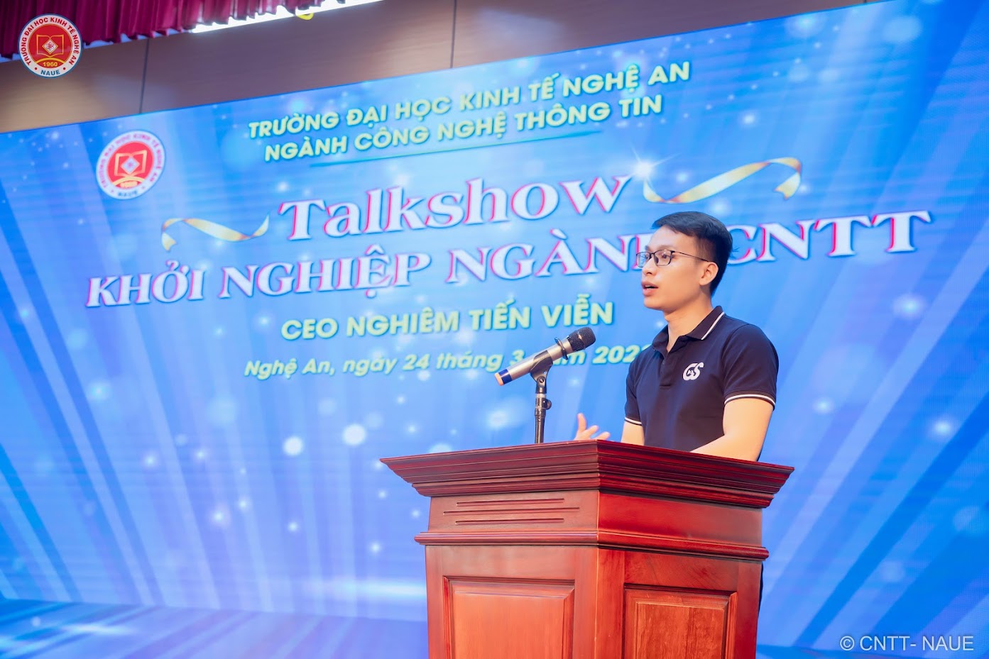 Sáng ngày 24/3/2023, Ngành Công nghệ thông tin - Trường Đại học Kinh tế Nghệ An đã tổ chức buổi Talkshow với chủ đề “Khởi nghiệp Ngành Công nghệ thông tin”, với sự trình bày của các diễn giả CEO Nghiêm Tiến Viễn - Người sáng lập công ty cổ phần công nghệ GoStream, Ông Hoàng Văn Thể - Giám đốc VNPT Thành phố Vinh, Ông Phan Thế Chiến – Giám đốc công ty TNHH Nông Nghiệp Hùng Cường.