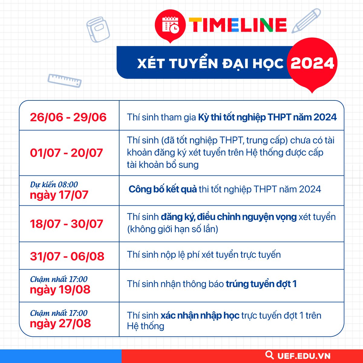 Các mốc thời gian thí sinh cần lưu ý trong tuyển sinh đại học năm 2024 09/07/2024 12:00 1328 lượt xem