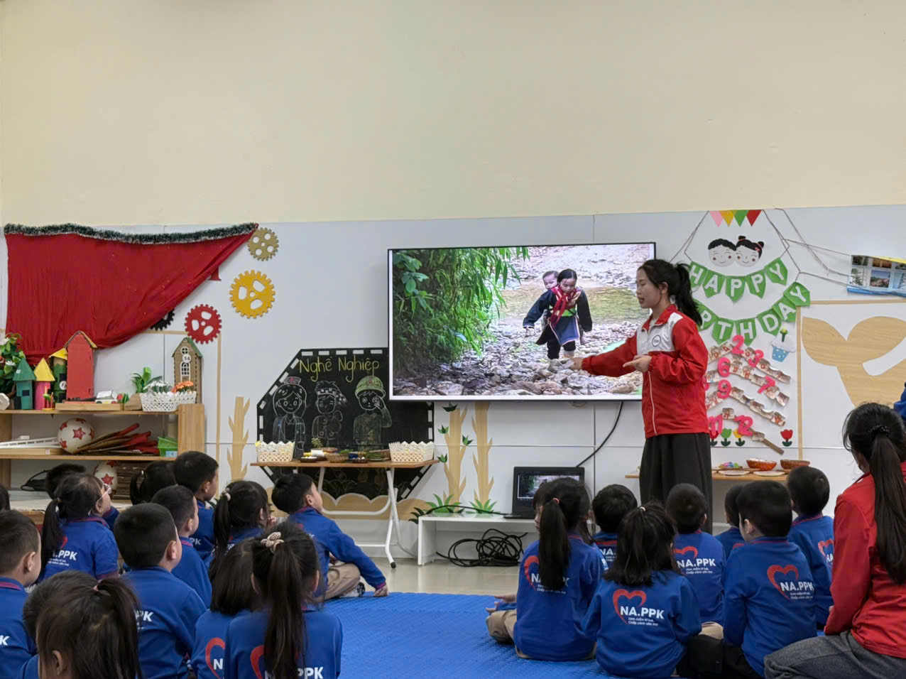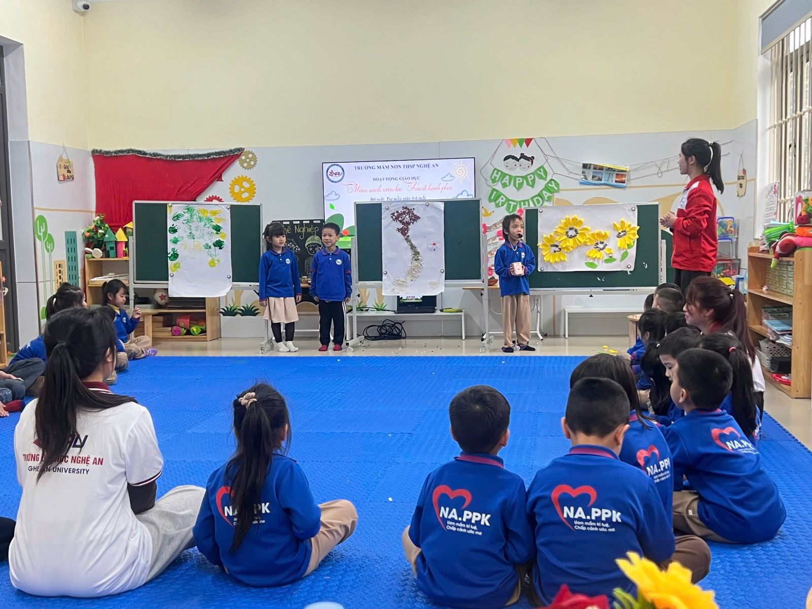 Giáo dục mầm non không chỉ là hành trình nuôi dưỡng trí tuệ, mà còn là quá trình gieo trồng những hạt mầm yêu thương đầu đời trong tâm hồn trẻ thơ. Với mong muốn giúp trẻ được sống trong môi trường giàu cảm xúc tích cực, biết yêu thương, sẻ chia, đồng cảm, và nghị lực vươn lên. Trường Mầm non THSP – Trường Đại học Nghệ An đã tổ chức hoạt động “MẦM XANH VƯƠN LÊN, TRAO ĐI HẠNH PHÚC” nhằm giáo dục lòng nhân ái cho trẻ, mở đầu cho chuỗi hoạt động ý nghĩa “Xuân yêu thương” năm nay.