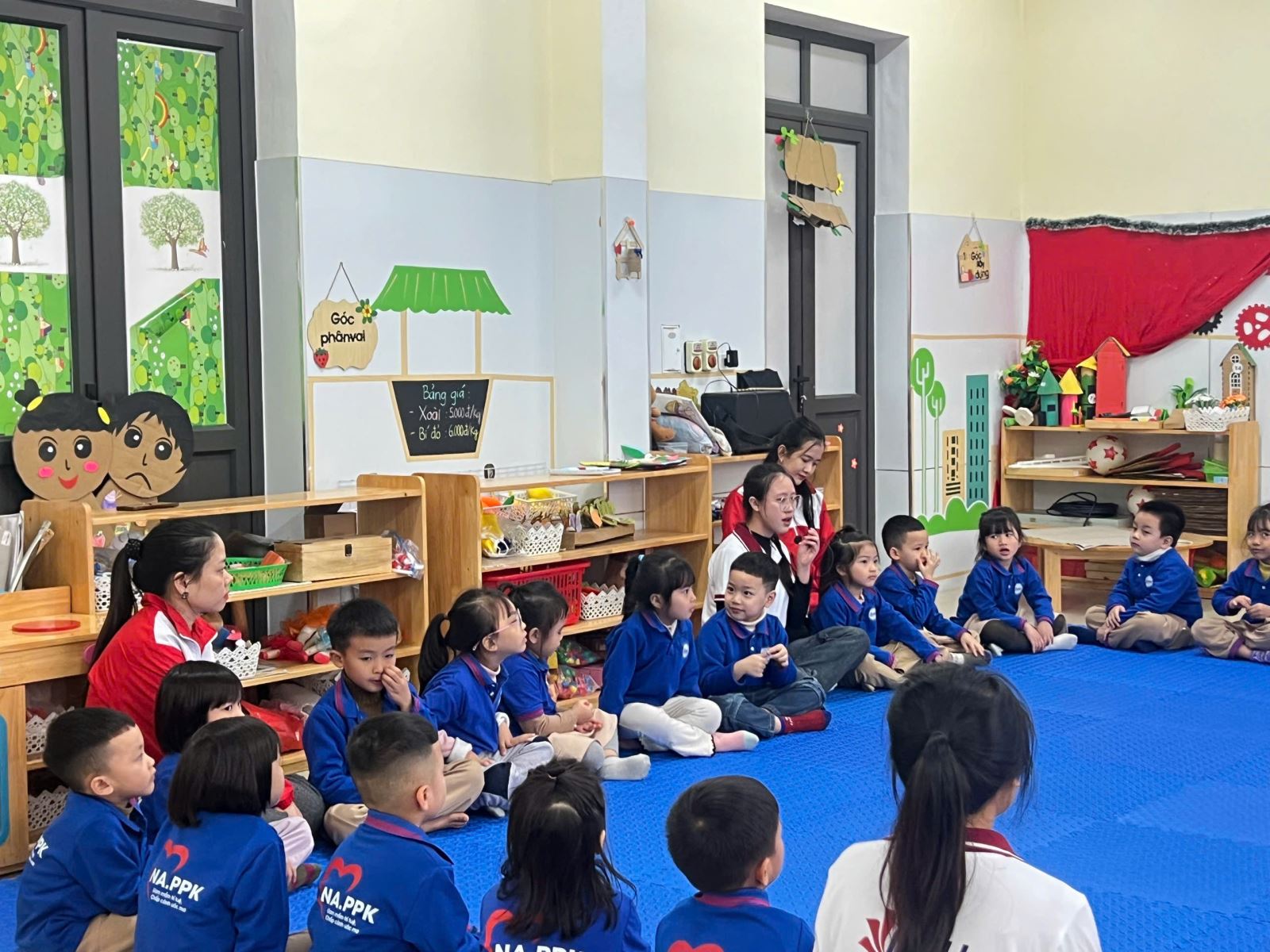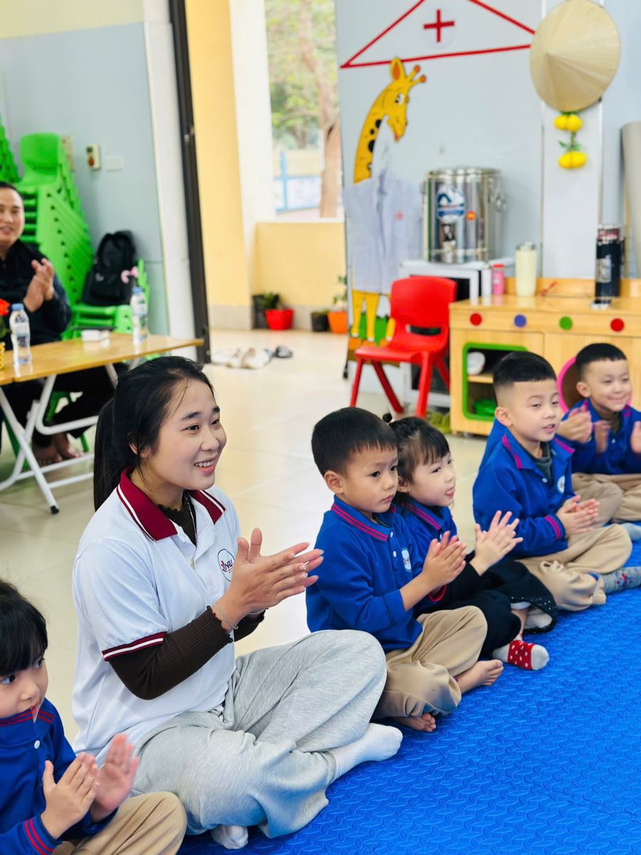 Không dừng lại ở việc lắng nghe, các bé còn được trực tiếp tham gia các hoạt động trải nghiệm, thảo luận nhóm, quan sát hình ảnh về cuộc sống của trẻ em vùng cao; từ đó bày tỏ suy nghĩ, cảm xúc và mong muốn được sẻ chia, giúp đỡ những bạn nhỏ kém may mắn hơn mình. Những bức tranh tập thể mang thông điệp hy vọng – yêu thương – kết nối được các con cùng cô giáo hoàn thiện chính là minh chứng sinh động cho việc giáo dục lòng nhân ái bằng hành động cụ thể.