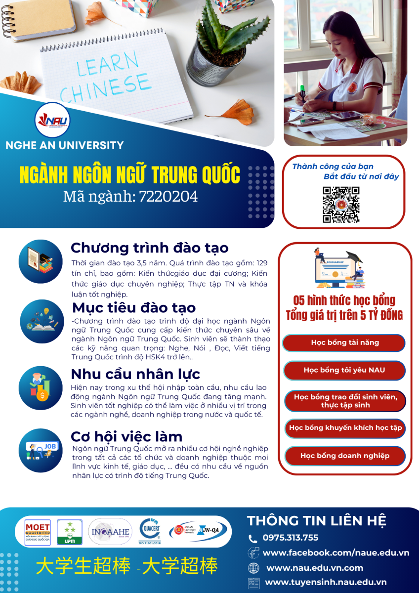 👉 Đăng ký xét tuyển ngành Ngôn ngữ Trung Quốc ngay hôm nay tại Trường Đại học Nghệ An.