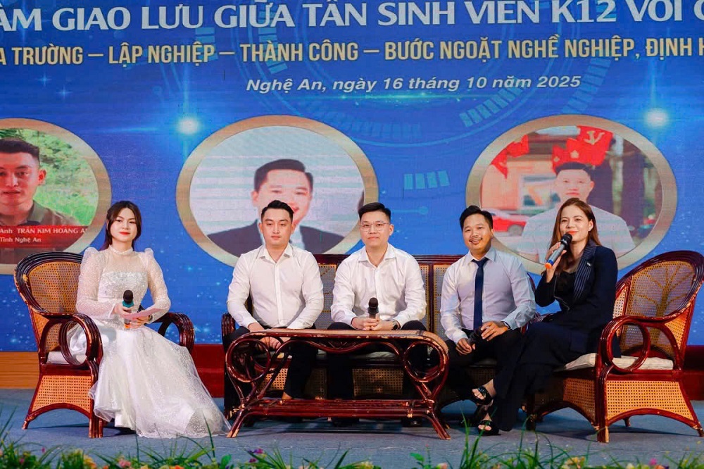 Tối ngày 16 tháng 10 năm 2025, tại Hội trường lớn Trường Đại học Nghệ An đã diễn ra buổi Tọa đàm “Ra trường - Lập nghiệp - Thành công” do Đoàn Thanh niên – Hội Sinh viên phối hợp với các khoa chuyên môn tổ chức. Chương trình có sự tham dự của Ban Giám hiệu Nhà trường, đại diện các đơn vị, giảng viên cùng đông đảo sinh viên các khóa, đặc biệt là sự trở lại của các anh chị cựu sinh viên tiêu biểu những gương mặt thành công trong nhiều lĩnh vực nghề nghiệp và khởi nghiệp.