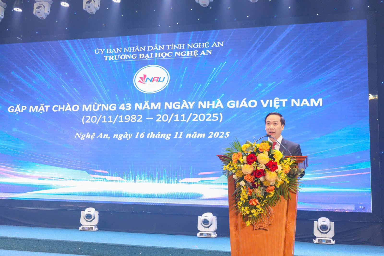 Trong không khí tri ân tháng 11, Trường Đại học Nghệ An đã long trọng tổ chức buổi Gặp mặt chào mừng 43 năm Ngày Nhà giáo Việt Nam. Đây là dịp để thầy và trò nhìn lại hành trình đáng tự hào của nghề giáo và gửi lời biết ơn sâu sắc tới các thế hệ nhà giáo đã cống hiến cho sự nghiệp “trồng người”.