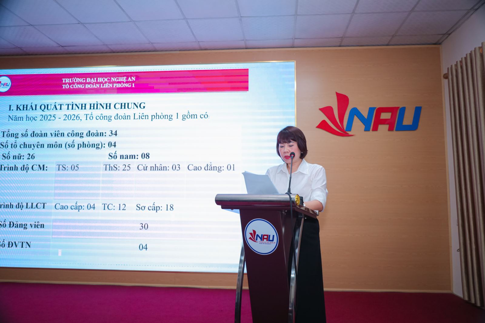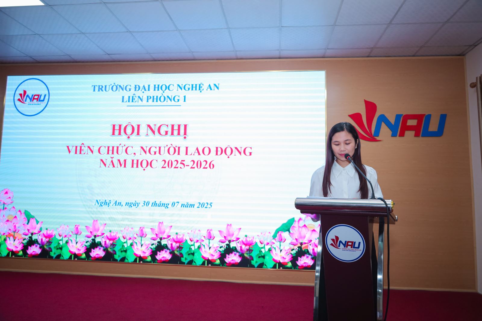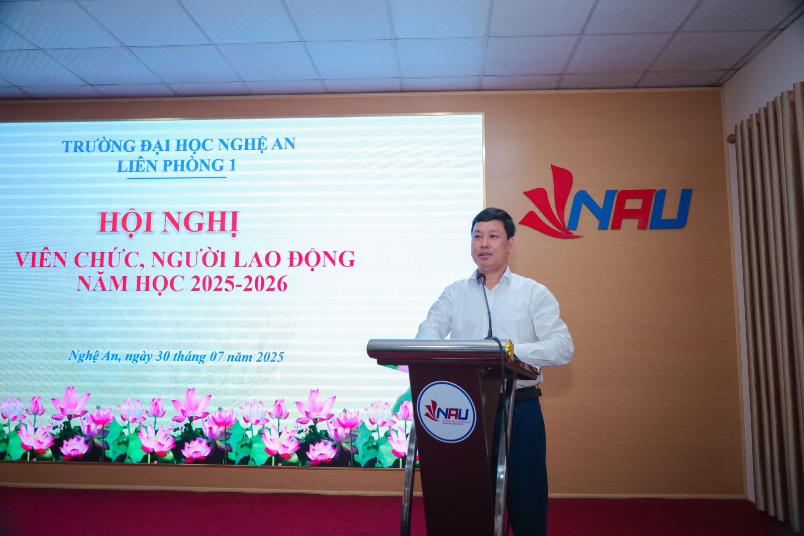 Chiều ngày 30 tháng 7 năm 2025, tại Hội trường A1.2 tập thể Liên phòng 1 Trường Đại học Nghệ An gồm các đơn vị ( Phòng Quản lý KH&HTQT; Phòng Quản lý đào tạo; Phòng Công tác Chính trị và Học sinh, Sinh viên; Phòng Thanh tra, khảo thí và ĐBCLGD) đã tổ chức Hội nghị viên chức, người lao động năm học 2025 – 2026.