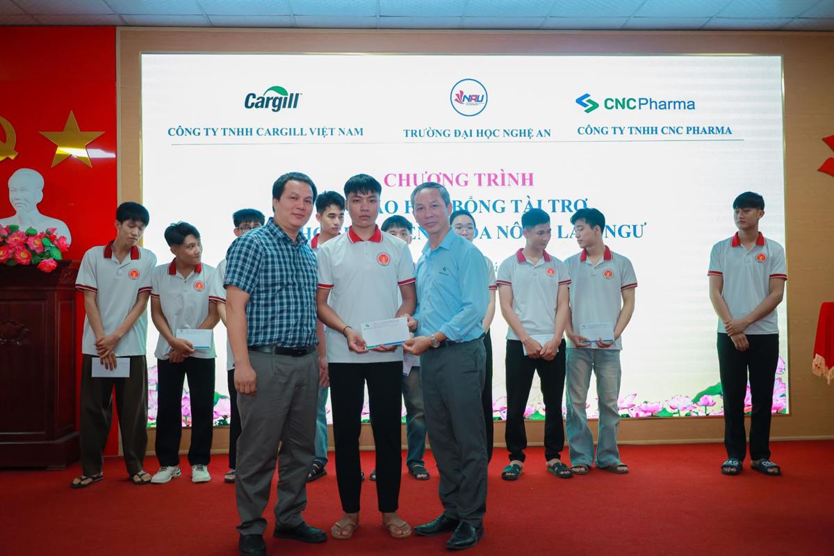 Đại diên Công ty TNHH CNC Pharma và Công ty TNHH Cargill Việt Nam trao học bổng cho sinh viên ngành Thú y Trường Đại học Nghệ An