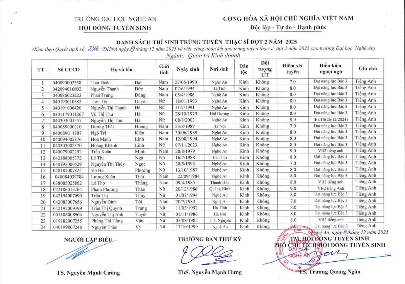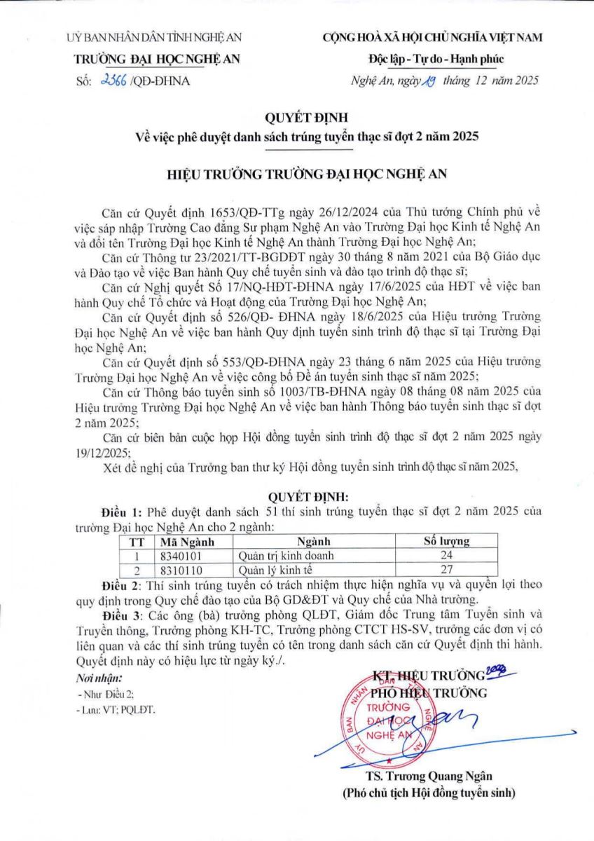 Quyết định về việc phê duyệt danh sách trúng tuyển Thạc sĩ đợt 2 năm 2025 19/12/2025 10:36 113 lượt xem