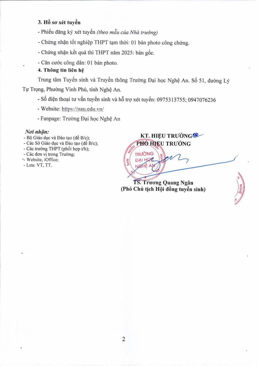 Trực tiếp tại Trung tâm Tuyển sinh và Truyền thông – Trường Đại học Nghệ An.