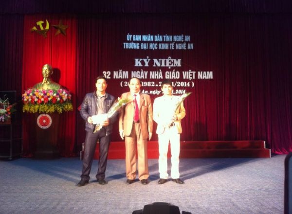 Thầy giáo Nguyễn Tự Cường lên nhận giải Nhì đợt phát động thi đua
